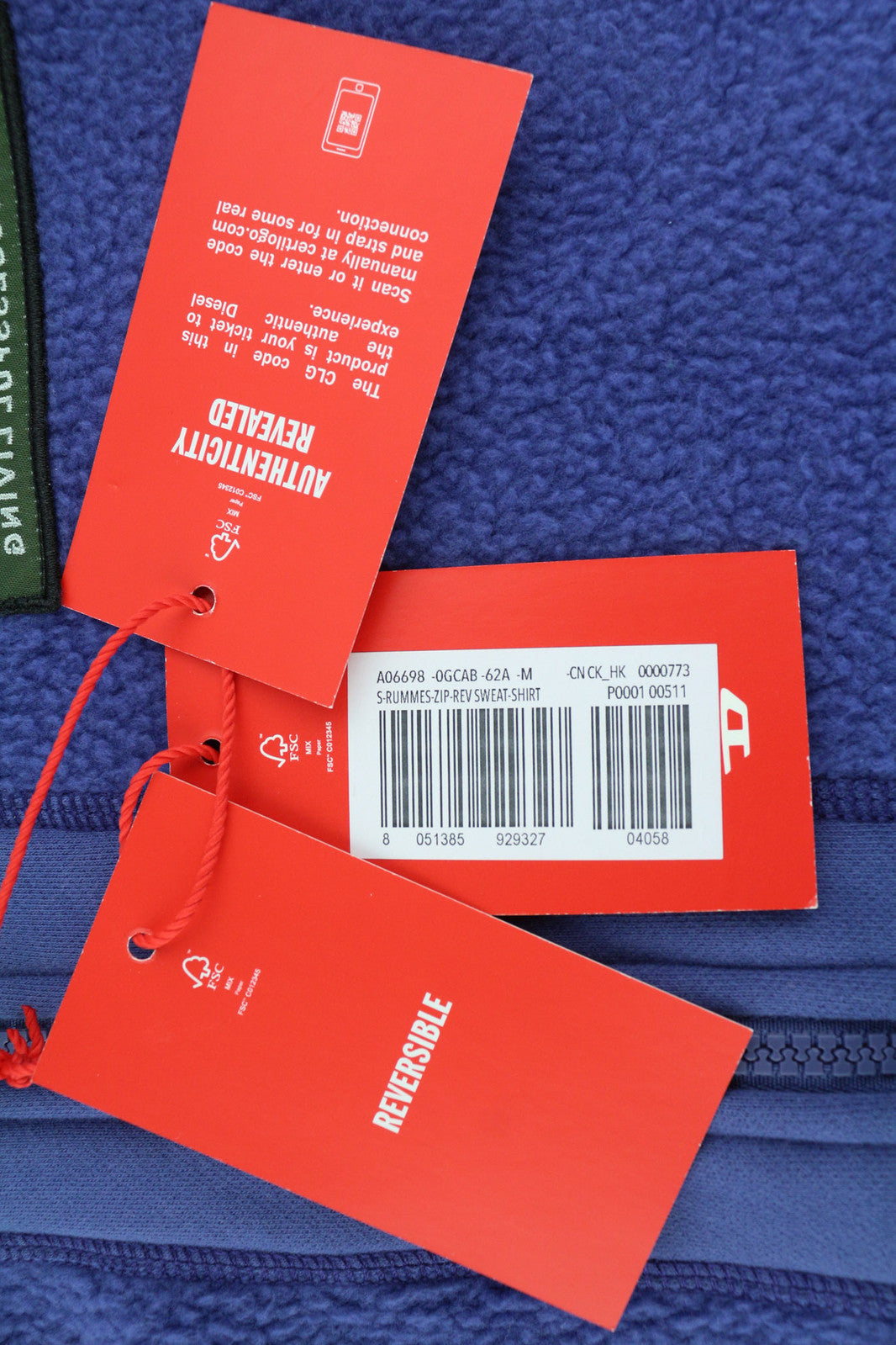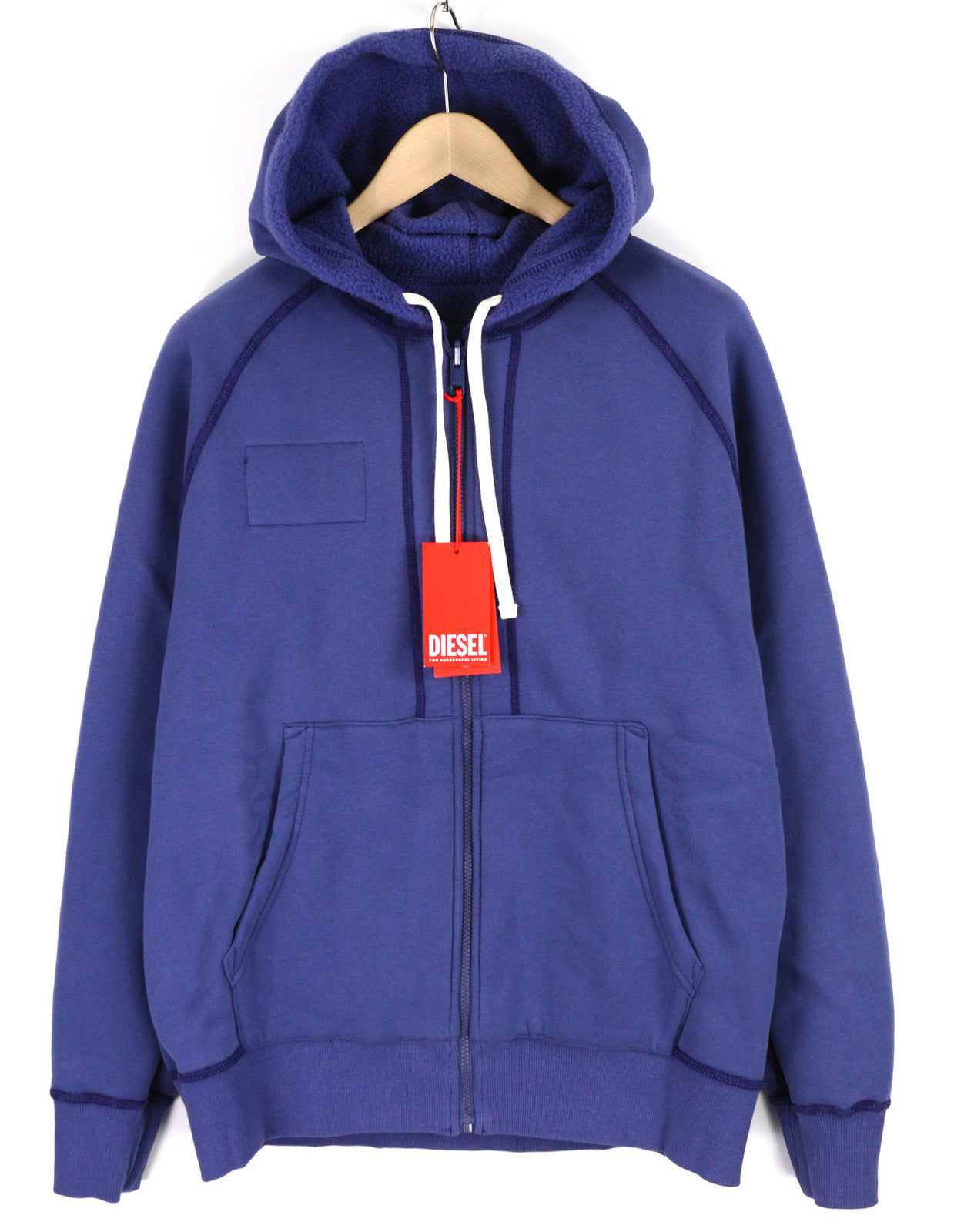 DIESEL S-Rummes-Zip-Rev vyriškas džemperis su gobtuvu M, mėlynas, su flisinėmis kišenėmis, didelis, rekomenduojama kaina – 250 €