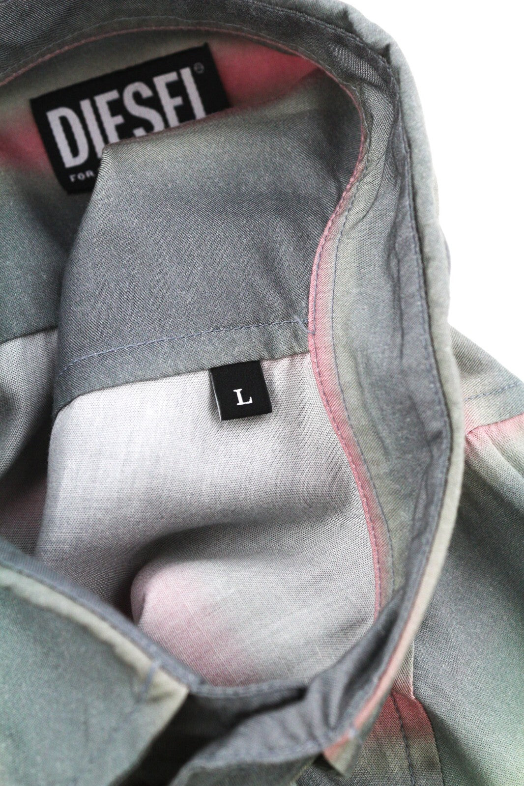 DIESEL vyriški marškinėliai su S formos Tucker juostele, L dydžio, raštuoti, su sagomis, platėjančia apykakle. Rekomenduojama kaina – 150 €.