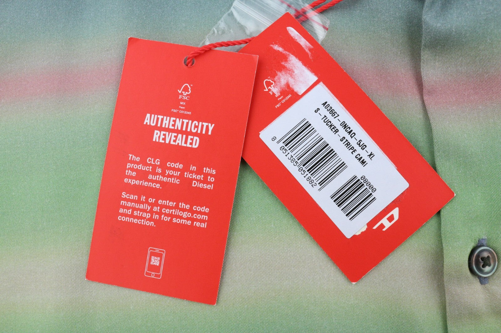 DIESEL S-Tucker dryžuoti vyriški marškinėliai, XL dydžio, raštuoti, rekomenduojama mažmeninė kaina – 150 €, platėjančios apykaklės.