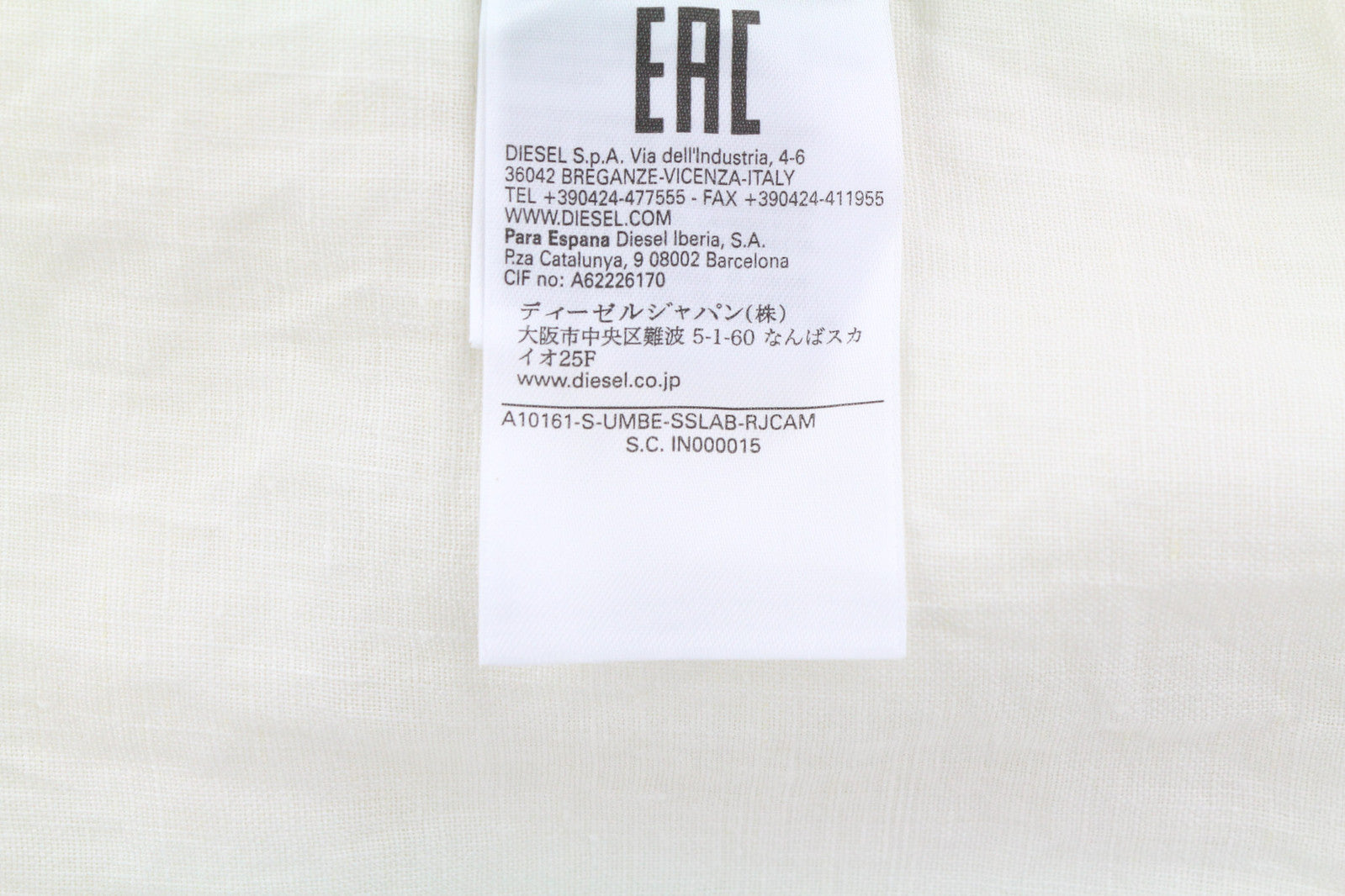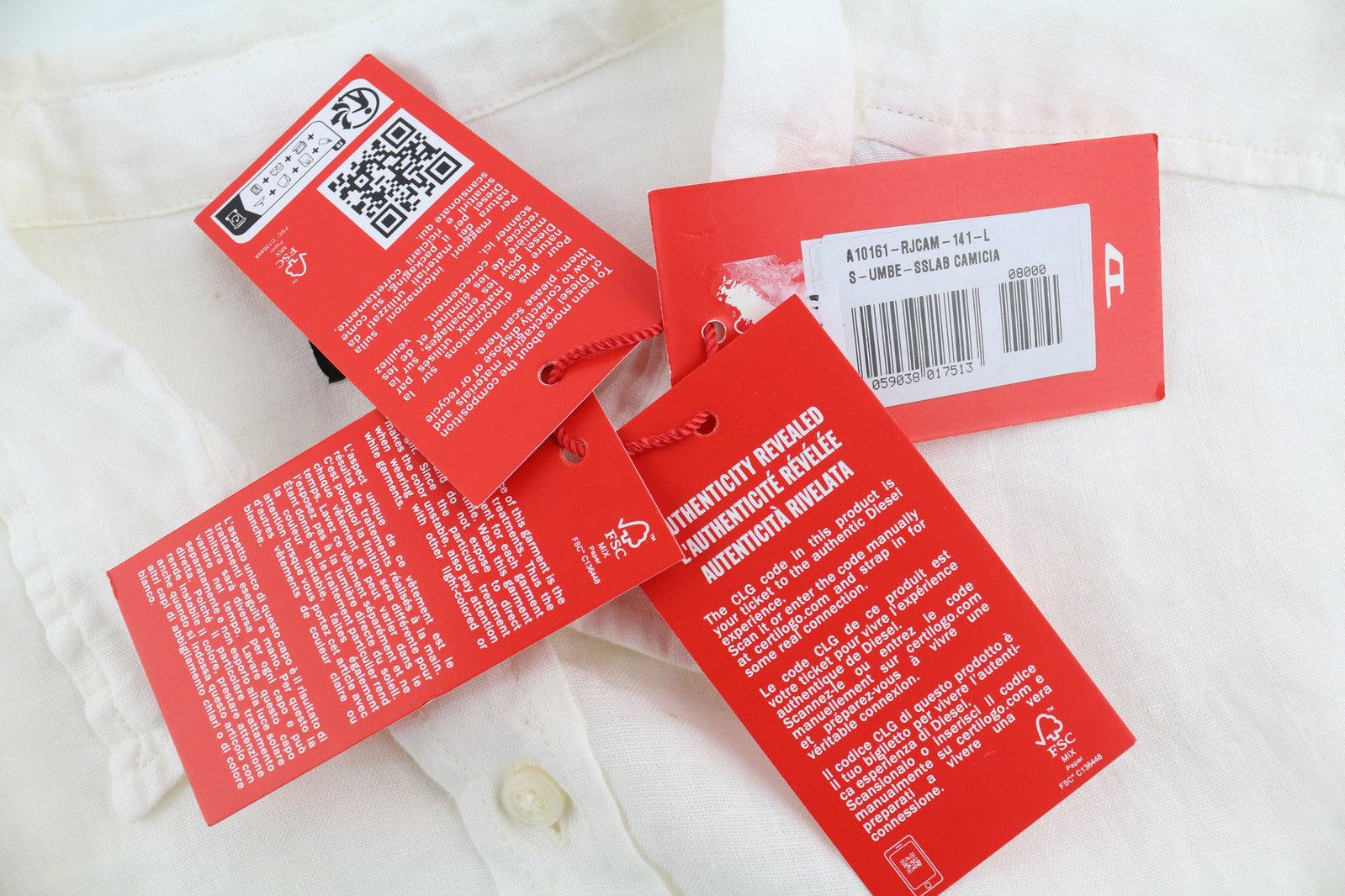 DIESEL S-Umbe-Sslab vyriški marškinėliai L, balti, trumpomis rankovėmis, lininiai, platėjančios iškirptės, RRP 150 €