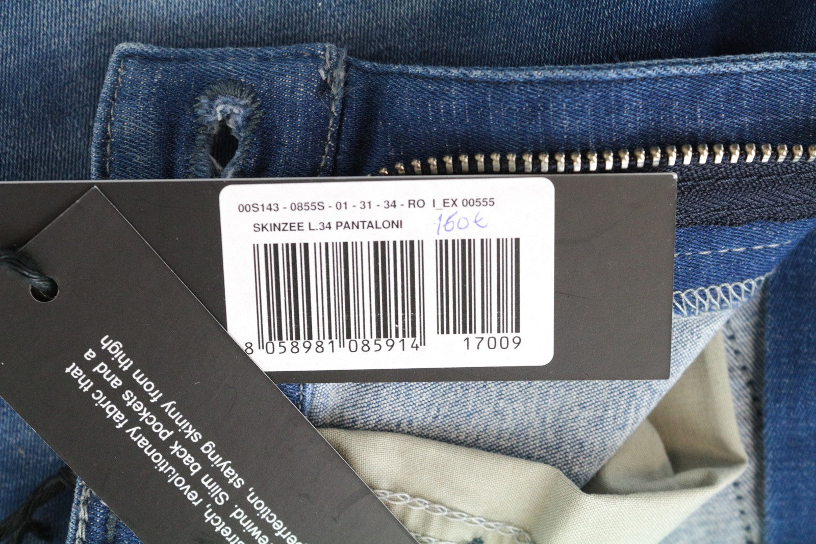 DIESEL Skinzee 0855S W31/L34 mėlyni aptempti medvilniniai ploni kirpimo džinsai skalbimui