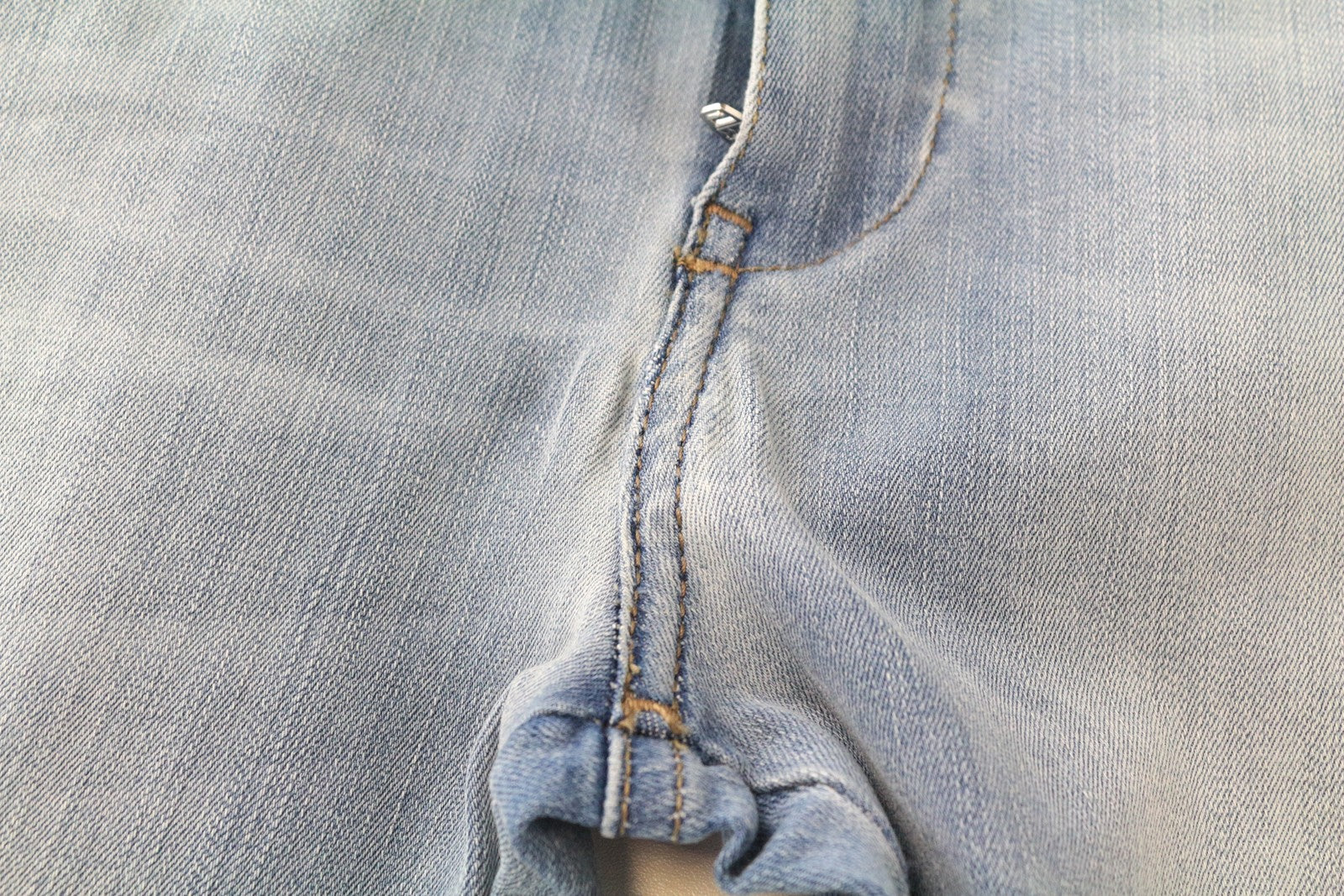Nauja, su defektu. Susisukęs audinys ties keliais ir tarpkoju. Žiūrėkite pridėtas nuotraukas.