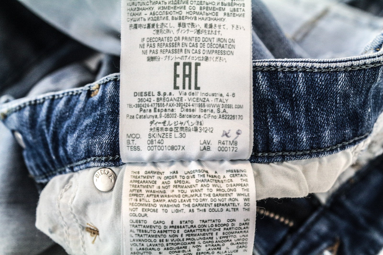 DIESEL Skinzee R4TM8 W26/L30 mėlyni plėšyti, ploni, aptempti moteriški džinsai