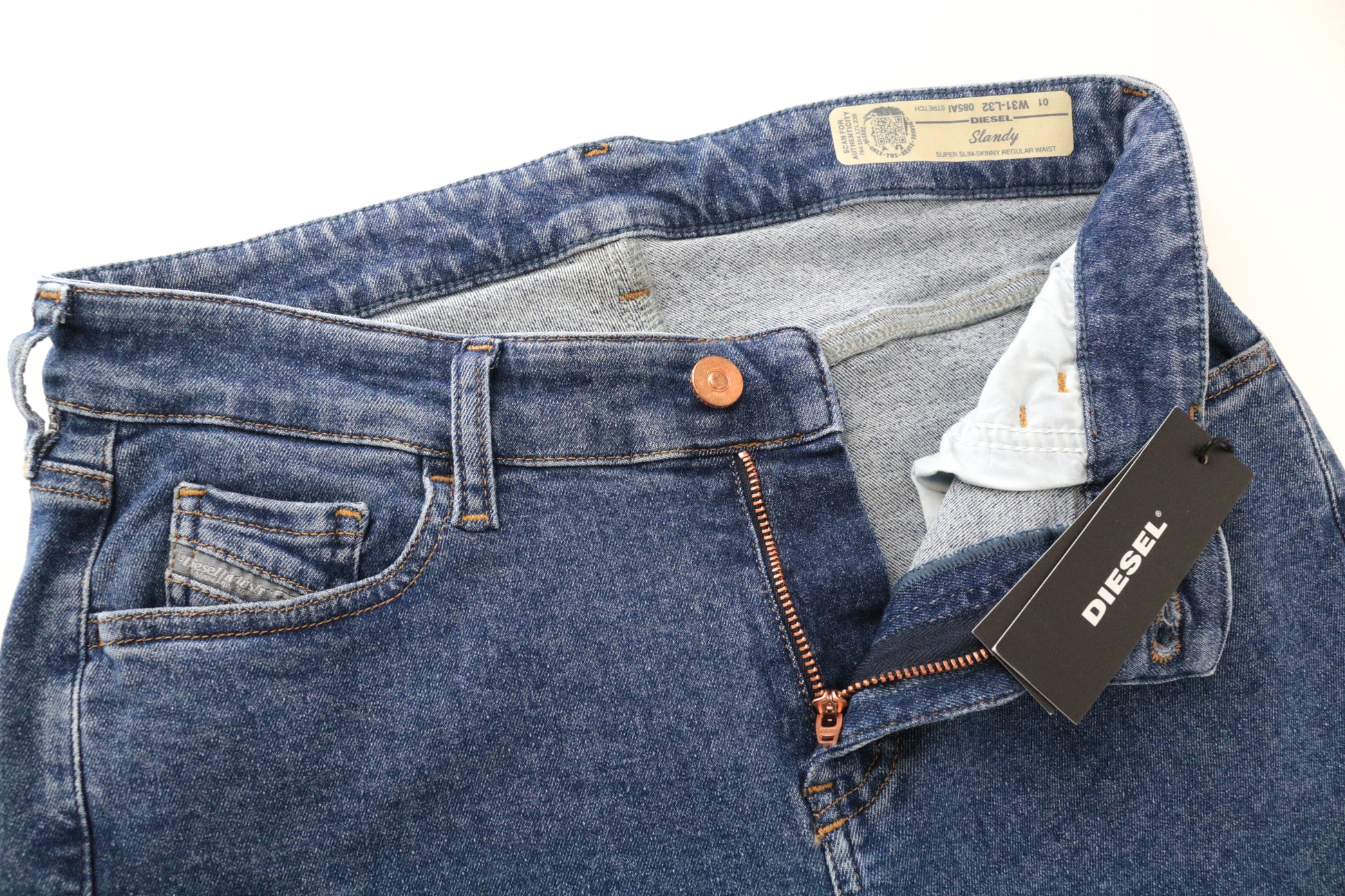 DIESEL Slandy 085AI moteriški mėlyni itin ploni tamprūs džinsai W31/L32