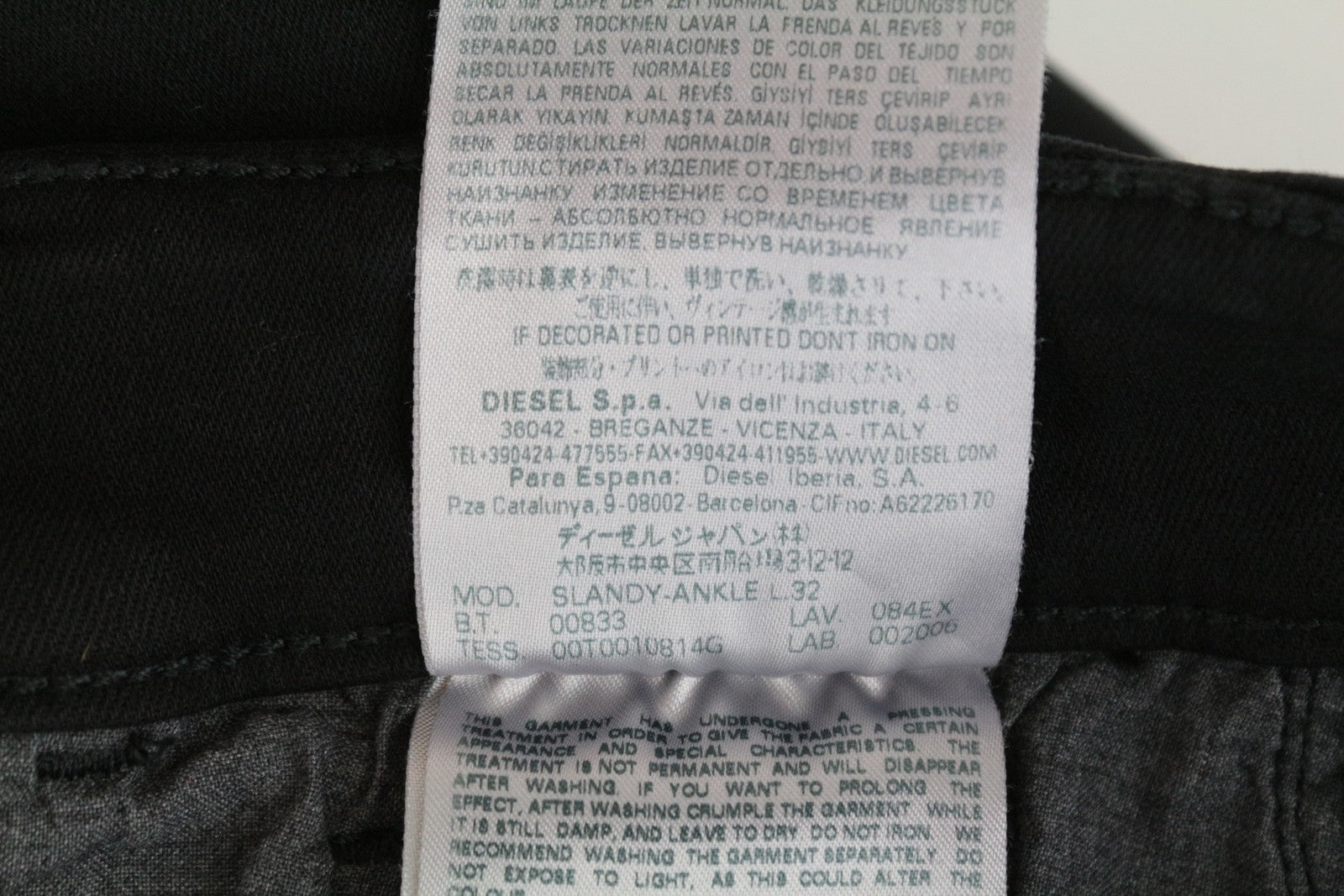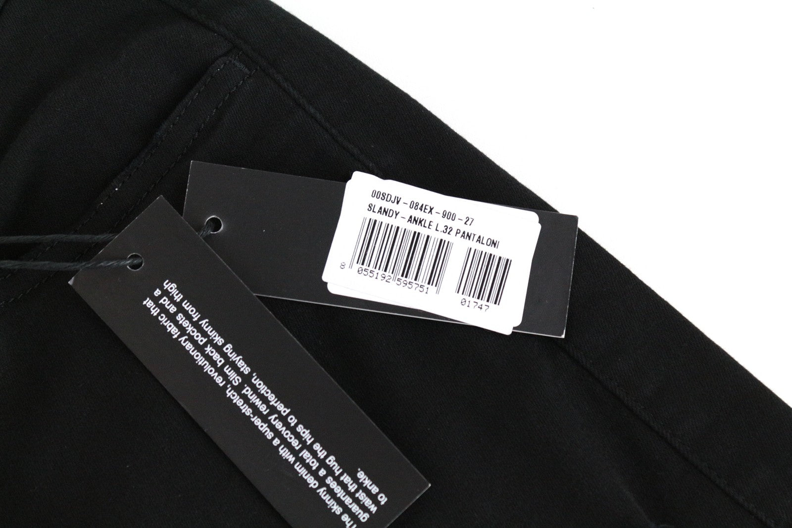 DIESEL Slandy-Ankle 084EX W27/L32 aptempti juodi tamprūs moteriški plėšyti džinsai