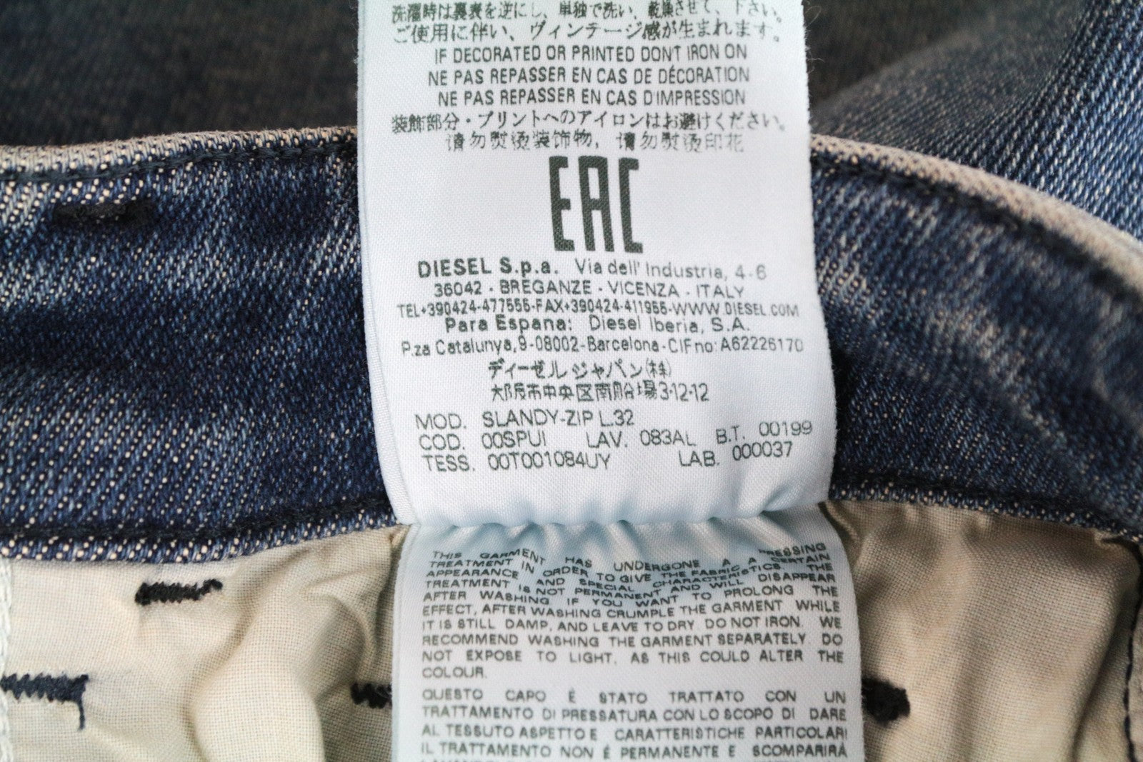 DIESEL Slandy-Zip 083AL moteriški džinsai W33/L32 itin aptempti, tamprūs, mėlyni