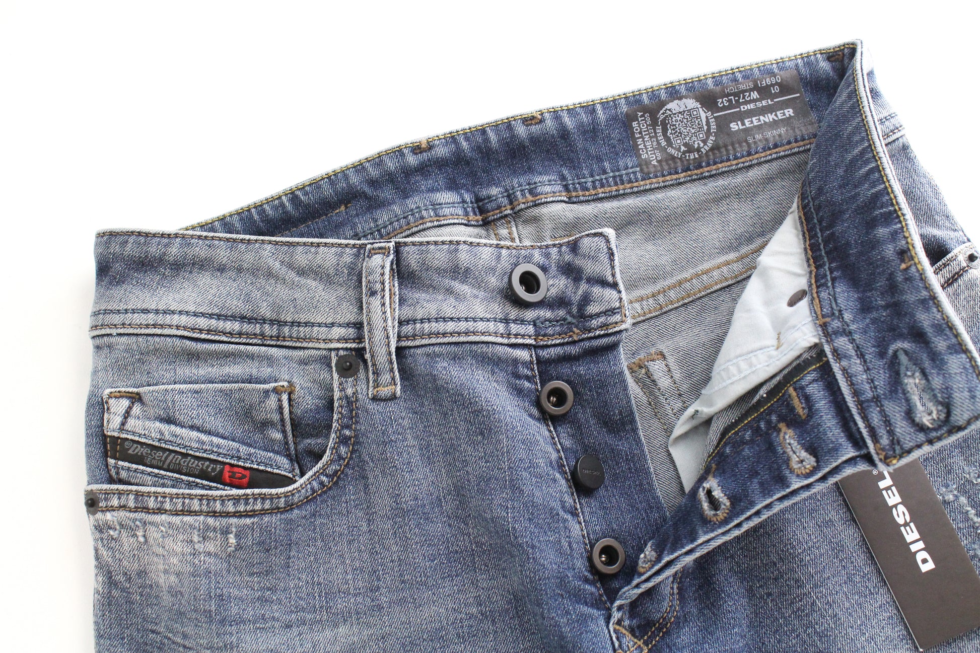 DIESEL Sleenker 069FI vyriški džinsai W27 L32 Slim Stretch Fit mėlyni skalbto džinso atspalviai