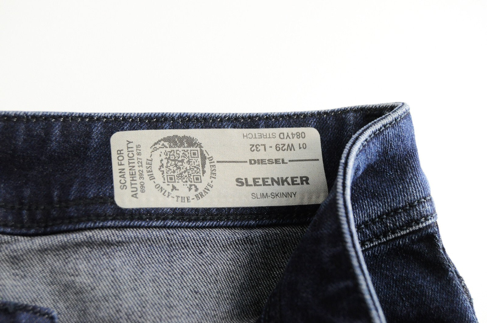 DIESEL Sleenker 084YD vyriški mėlyni aptempti džinsai W29/L32 tamprūs medvilniniai džinsai