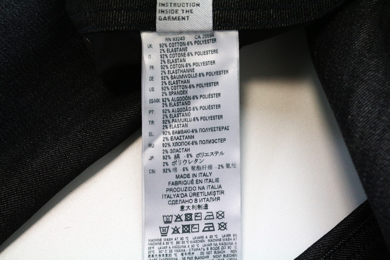 Material : 92%Cotton,6%Polyester,2%Elastane