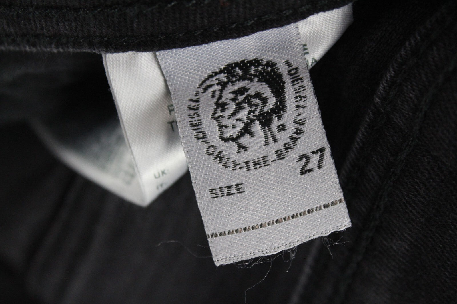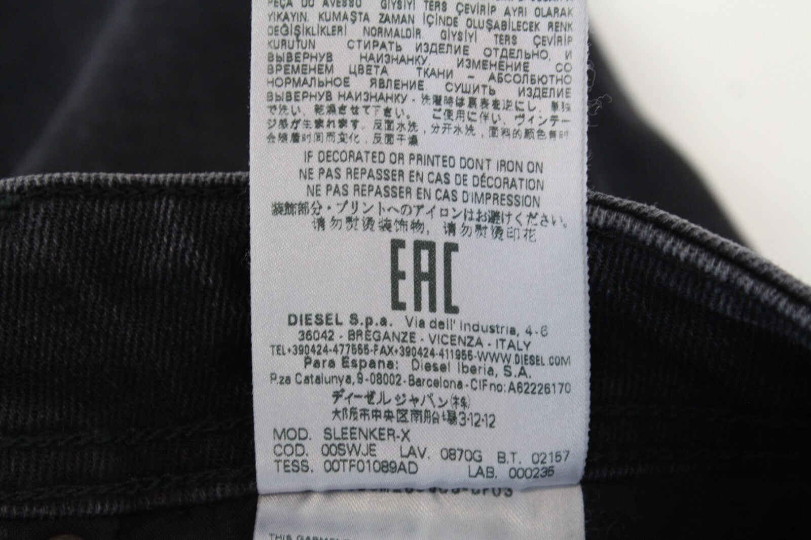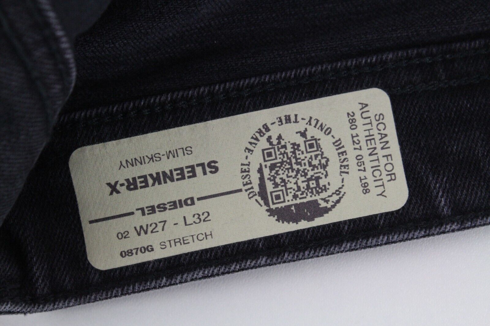 DIESEL Sleenker-X 0870G vyriški mėlyni džinsai W27/L32 juodi išblukinti, ploni, aptempti