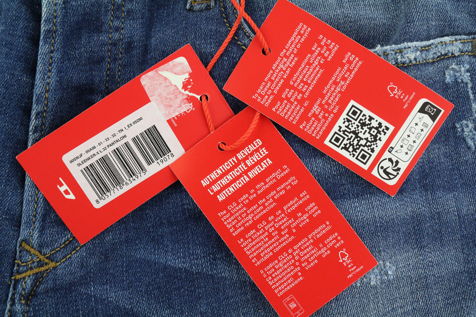 DIESEL Sleenker-X 09A86 vyriški džinsai W33/L32 aptempti, žemo juosmens, aptempti, mėlyni. Rekomenduojama kaina – 195 €.