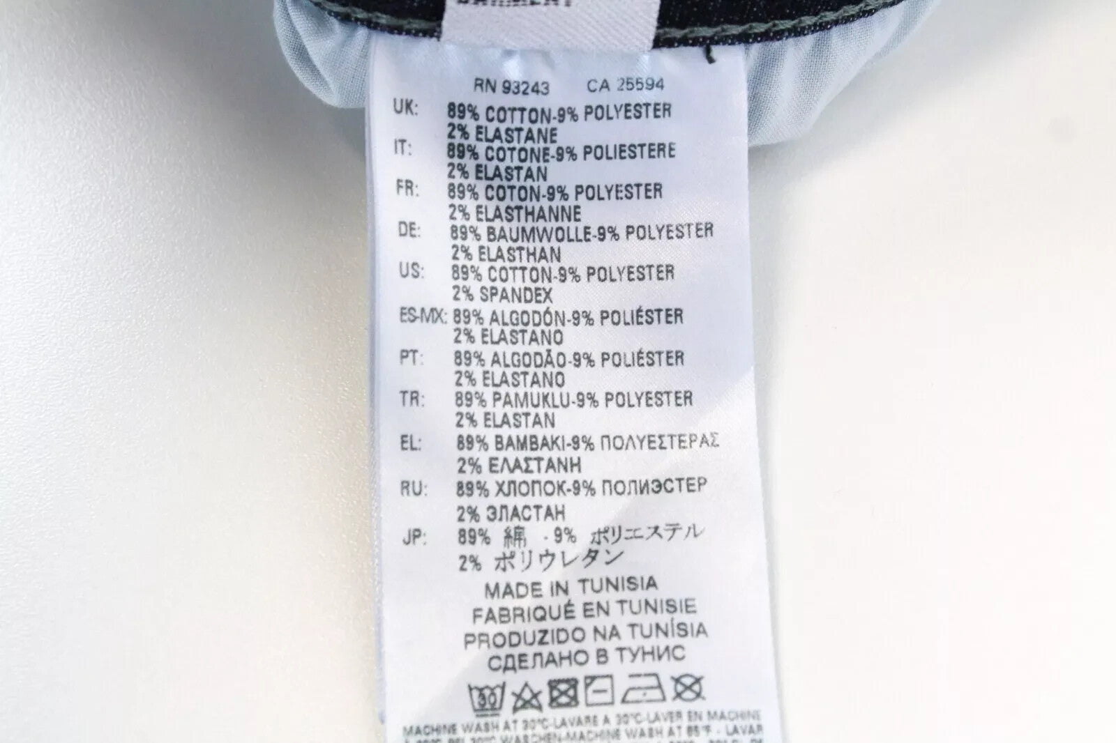 Material : 89%Cotton,9%Polyester,2%Elastane