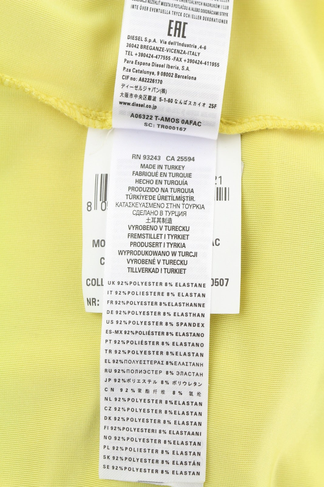 DIESEL T-Amos moteriški marškinėliai S dydžio, geltoni, veliūriniai, be rankovių, apvalios iškirptės, tamprūs, su logotipu