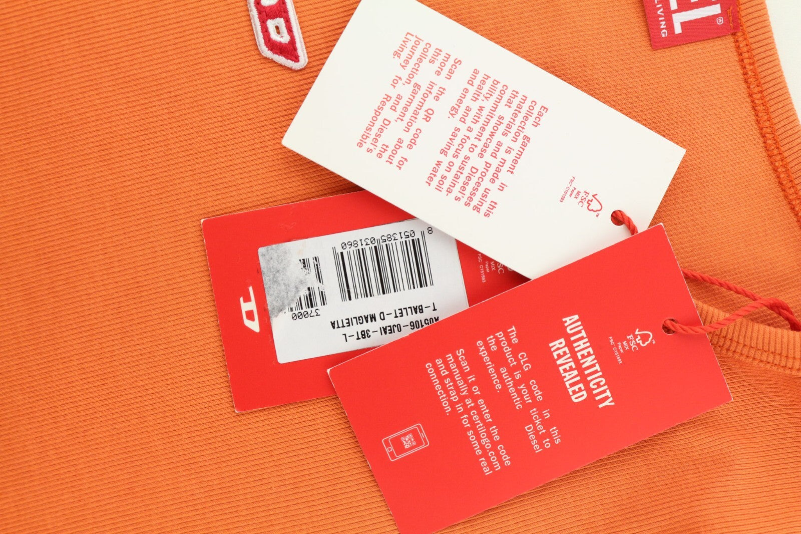 DIESEL T-Ballet-D moteriški marškinėliai L dydžio, oranžiniai, ilgomis rankovėmis, apvalios iškirptės, tamprūs, RRP 100 €