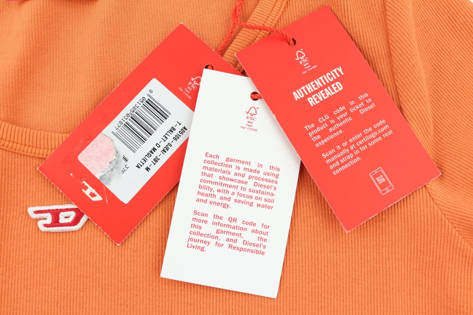 DIESEL T-Ballet-D moteriški marškinėliai M oranžiniai ilgomis rankovėmis apvaliu kaklu tamprūs drabužiai RRP 100 €