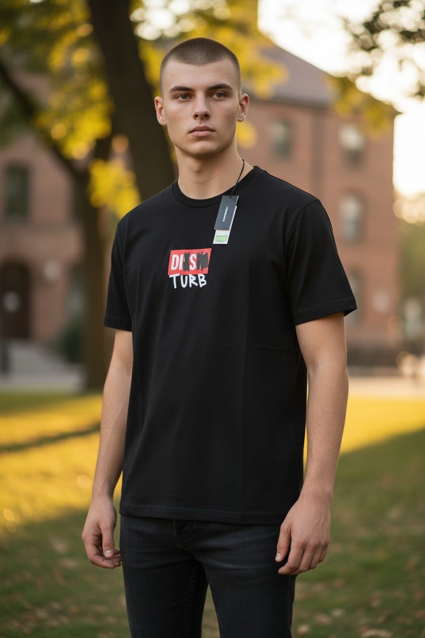 DIESEL T-Diegos-B10 vyriški marškinėliai, XL dydžio, juodi, trumpomis rankovėmis, apvalia apykakle, trikotažo spalvos