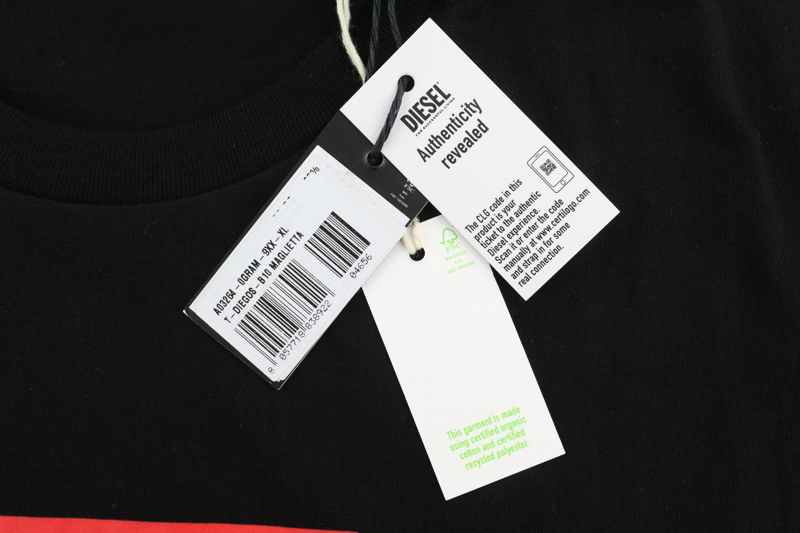 DIESEL T-Diegos-B10 Mens T-Shirt XL Black Short Sleeve Crew Collar Tricot