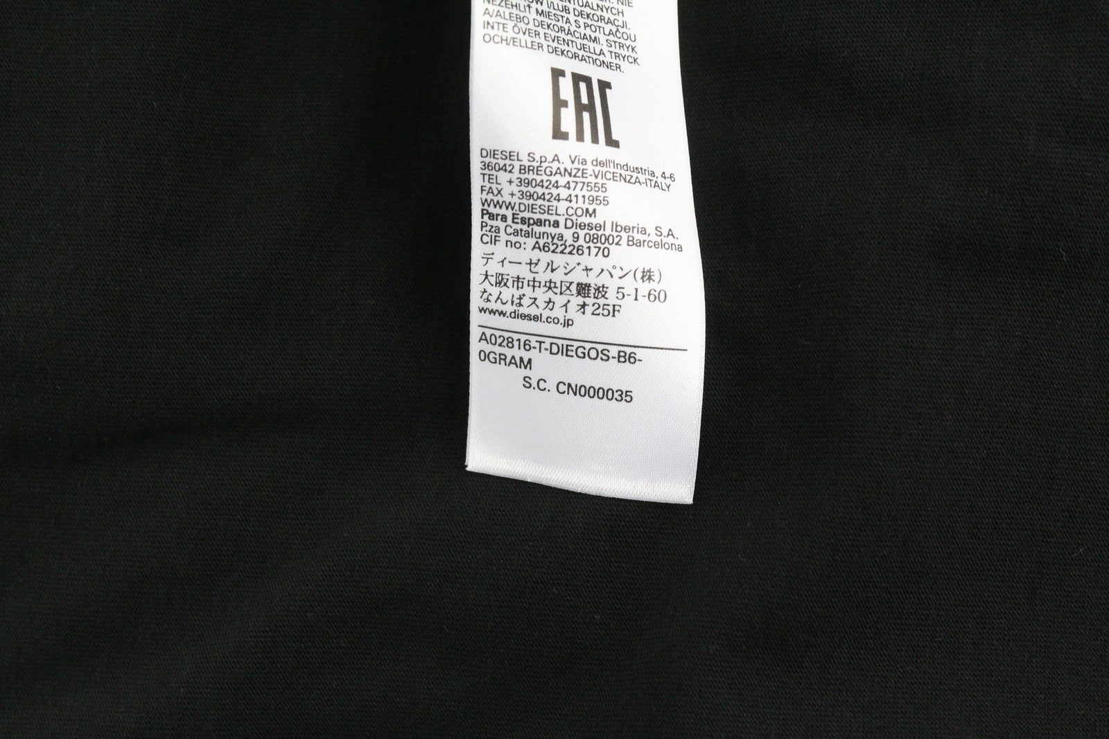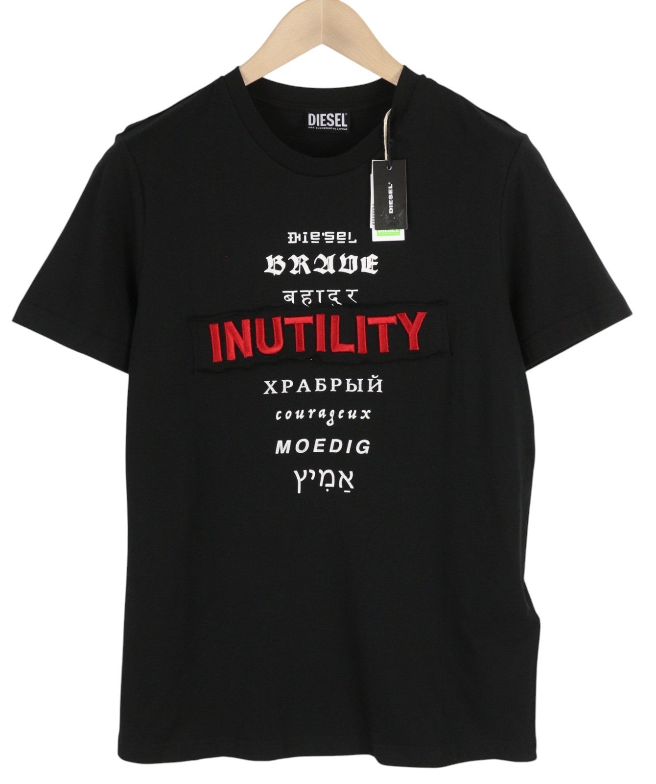 DIESEL T-Diegos-B6 vyriški marškinėliai S, juodi, tamprūs, siuvinėti, trumpomis rankovėmis.