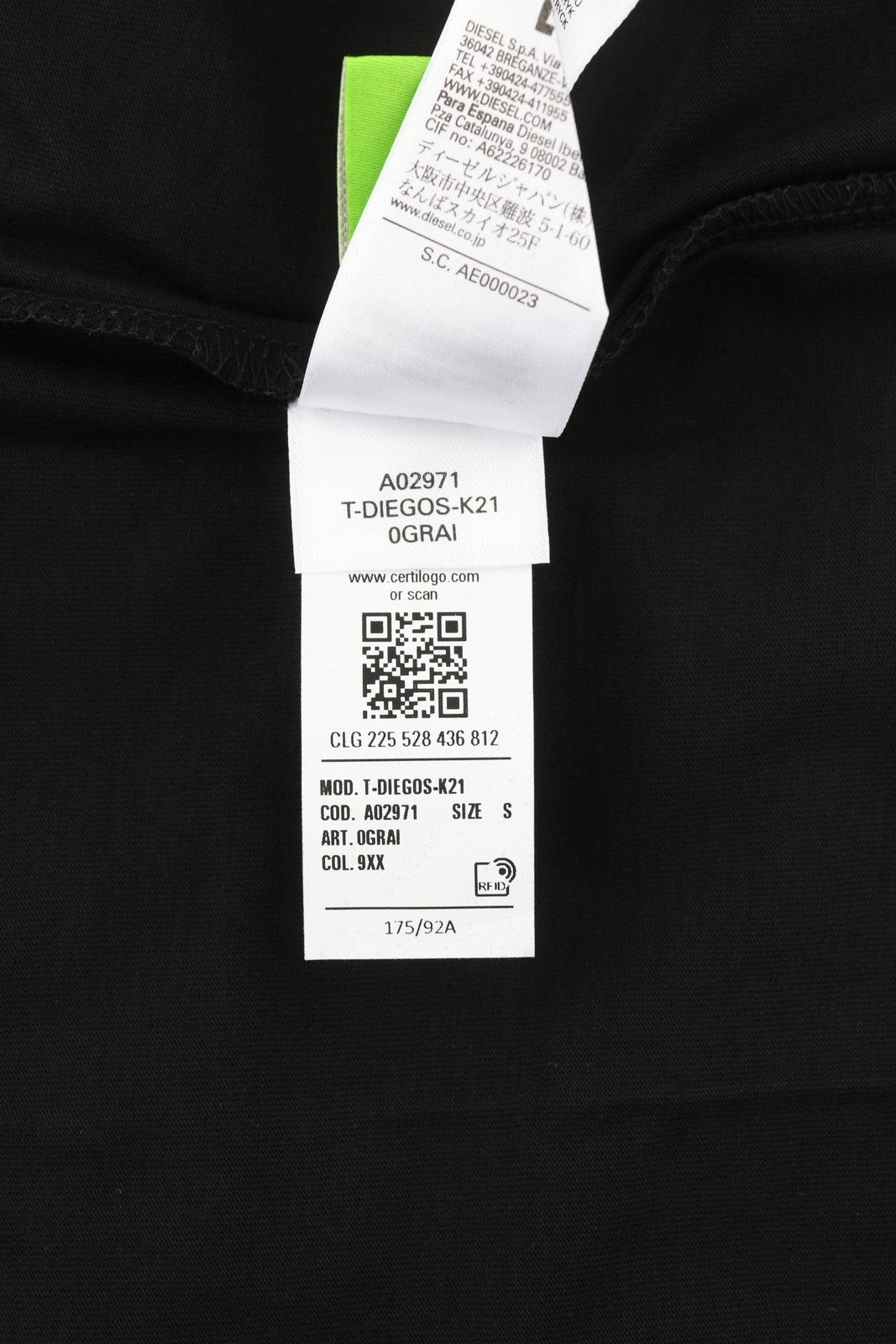 DIESEL T-Diegos-K21 vyriški marškinėliai S, juodi, tamprūs, trumpomis rankovėmis, su logotipu priekyje.
