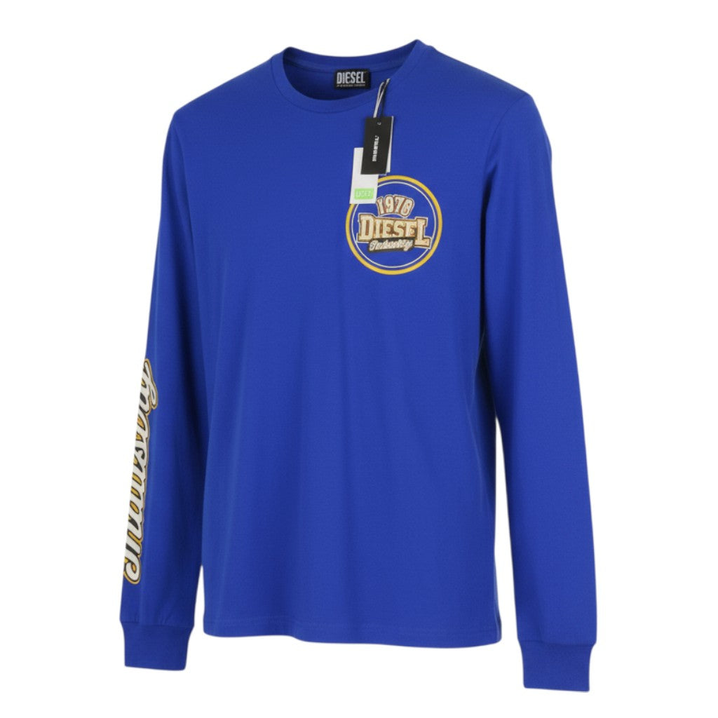 DIESEL T-Diegos-LS-K27 vyriški marškinėliai L dydžio, mėlyni, megztiniai su apvalia kaklu ir logotipu, medvilniniai