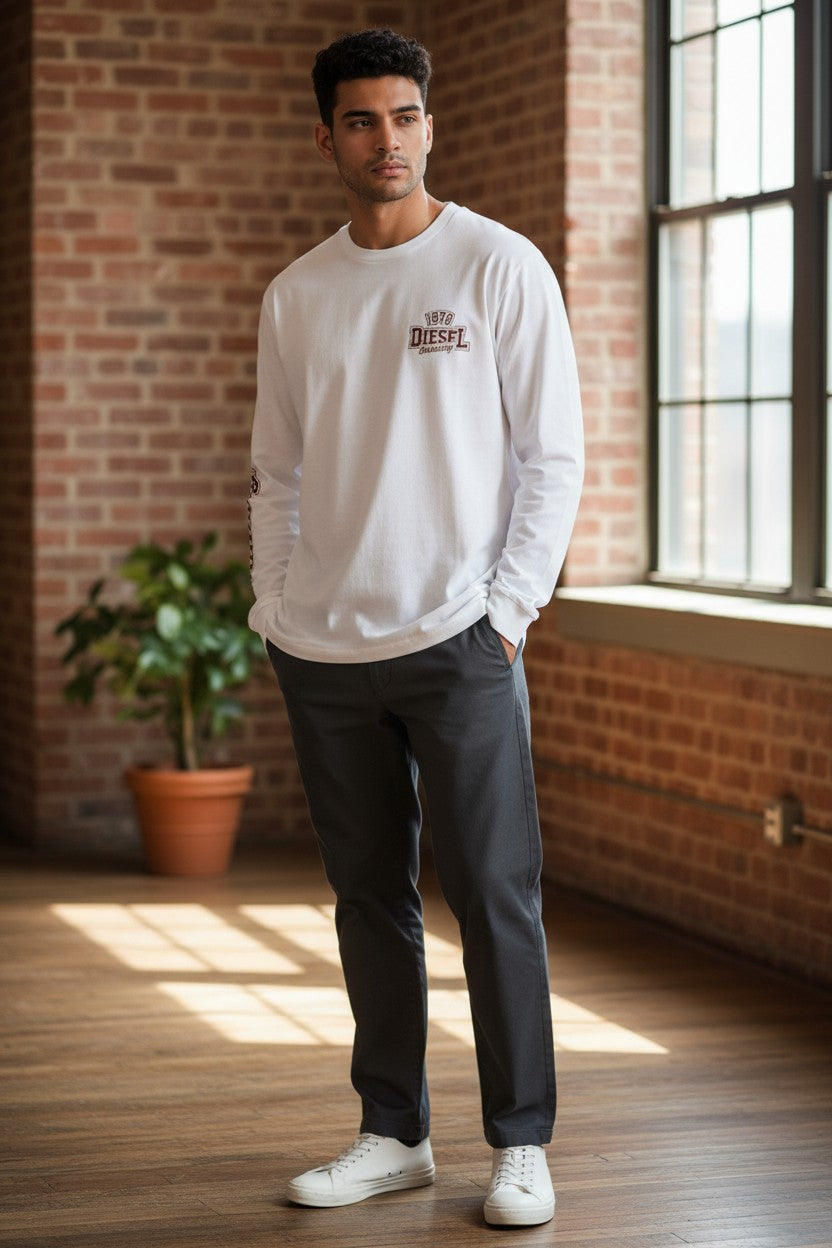 DIESEL T-Diegos-LS-K27 Men T-Shirt XL White Cotton Long Sleeved Crew Collar Logo