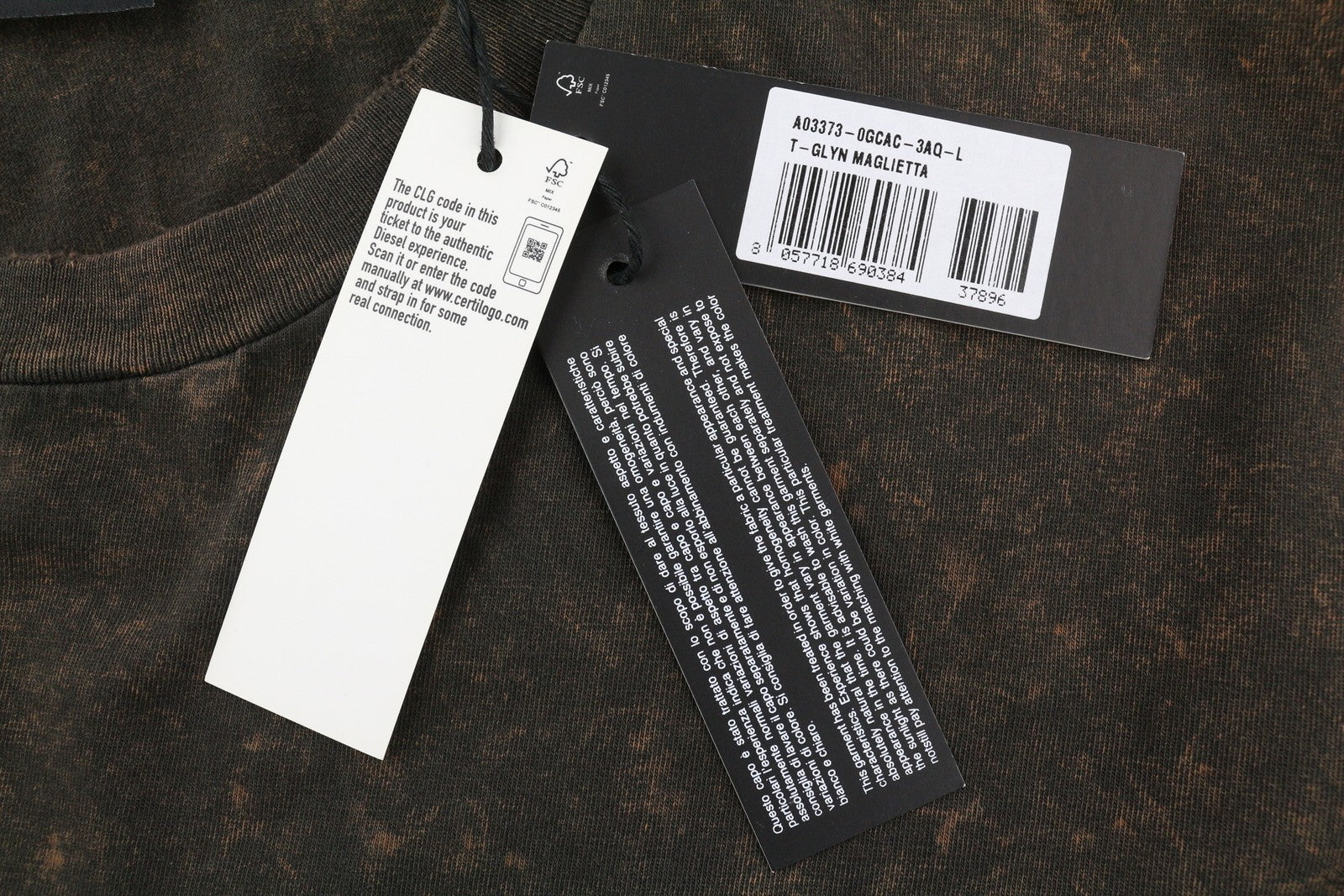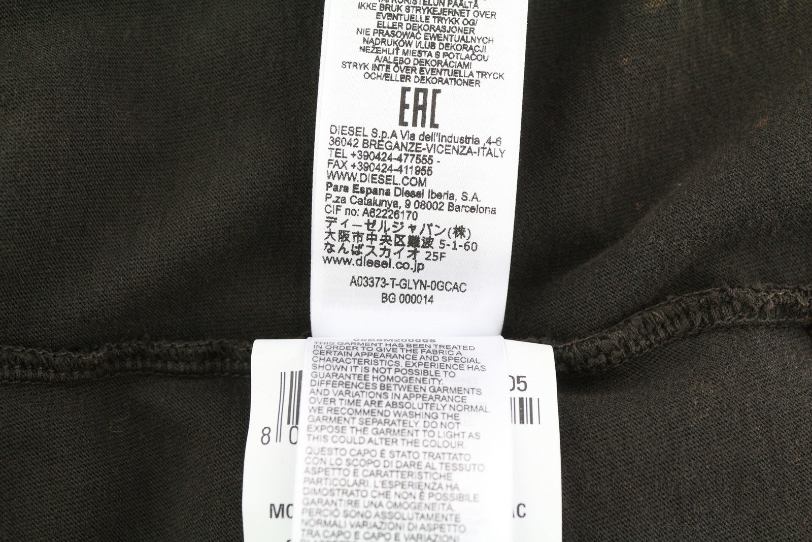 DIESEL T-Glyn Men T-Shirt L Brown Washed Effect Distress Hem Long Sleeve RRP€125