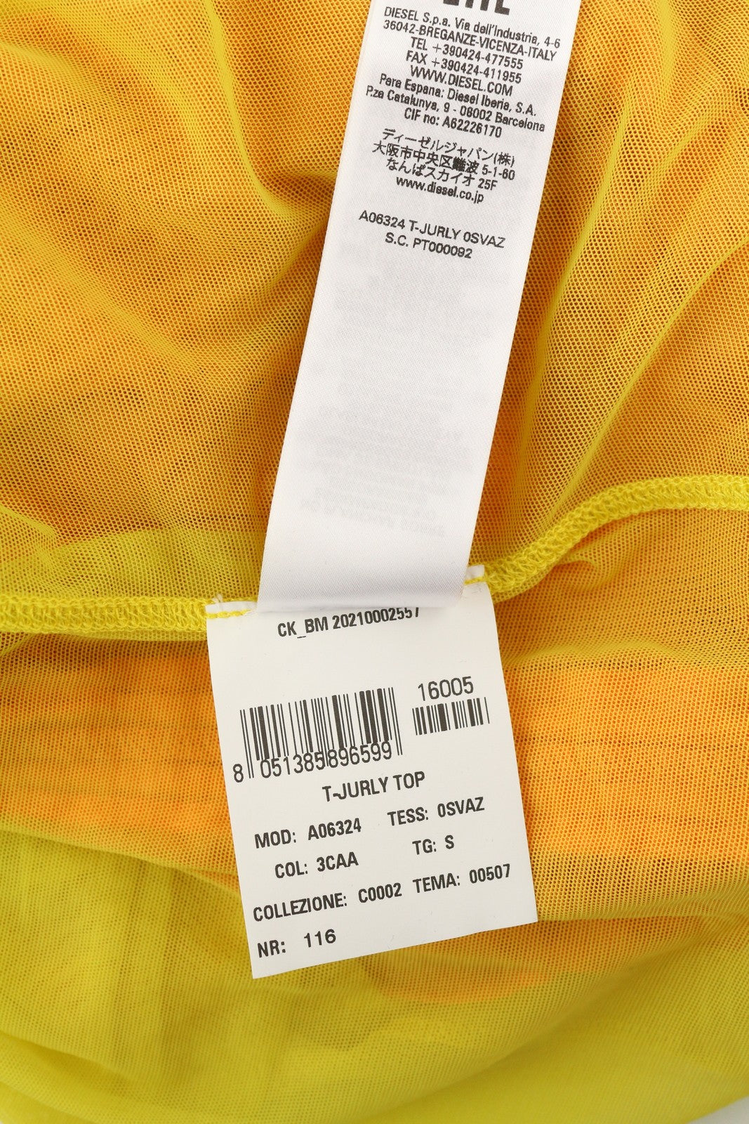 DIESEL T-Jurly Women's T-Shirt S Orange Mesh Long Sleeve Side Drawstring RRP220