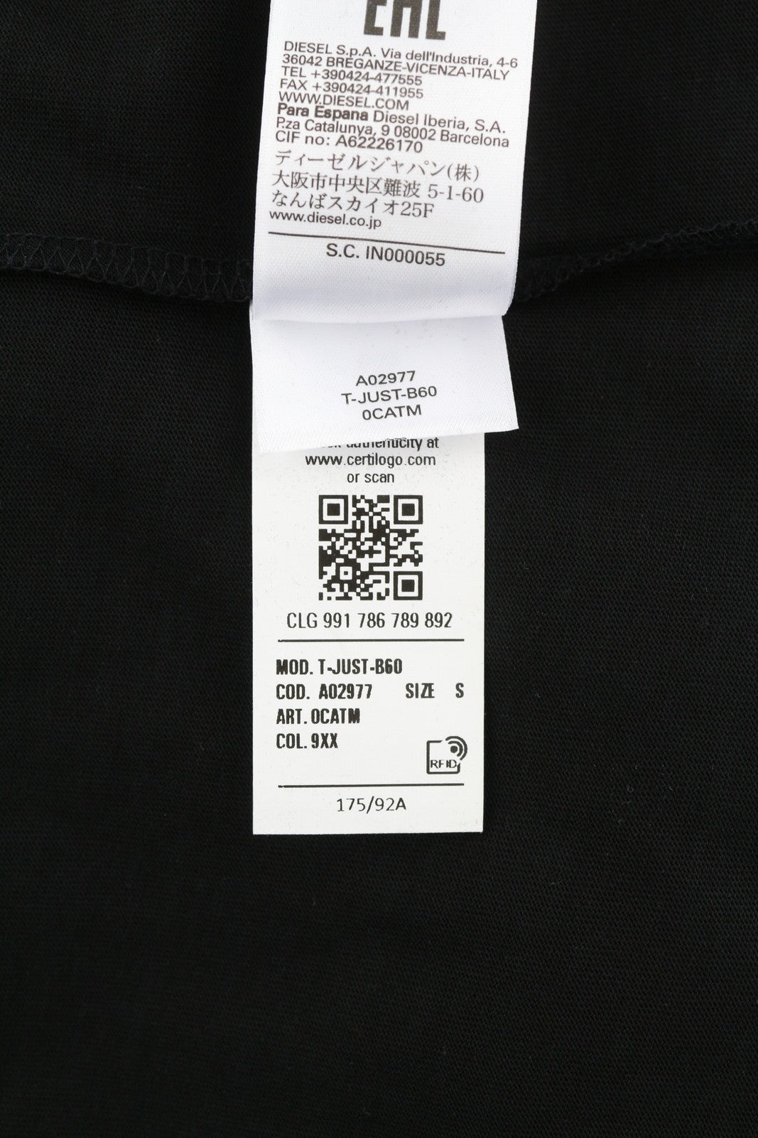 DIESEL T-Just-B60 vyriški marškinėliai su juodu, trumpomis rankovėmis, apvalia kaklo iškirpte, trikotažo raštu, S dydžio