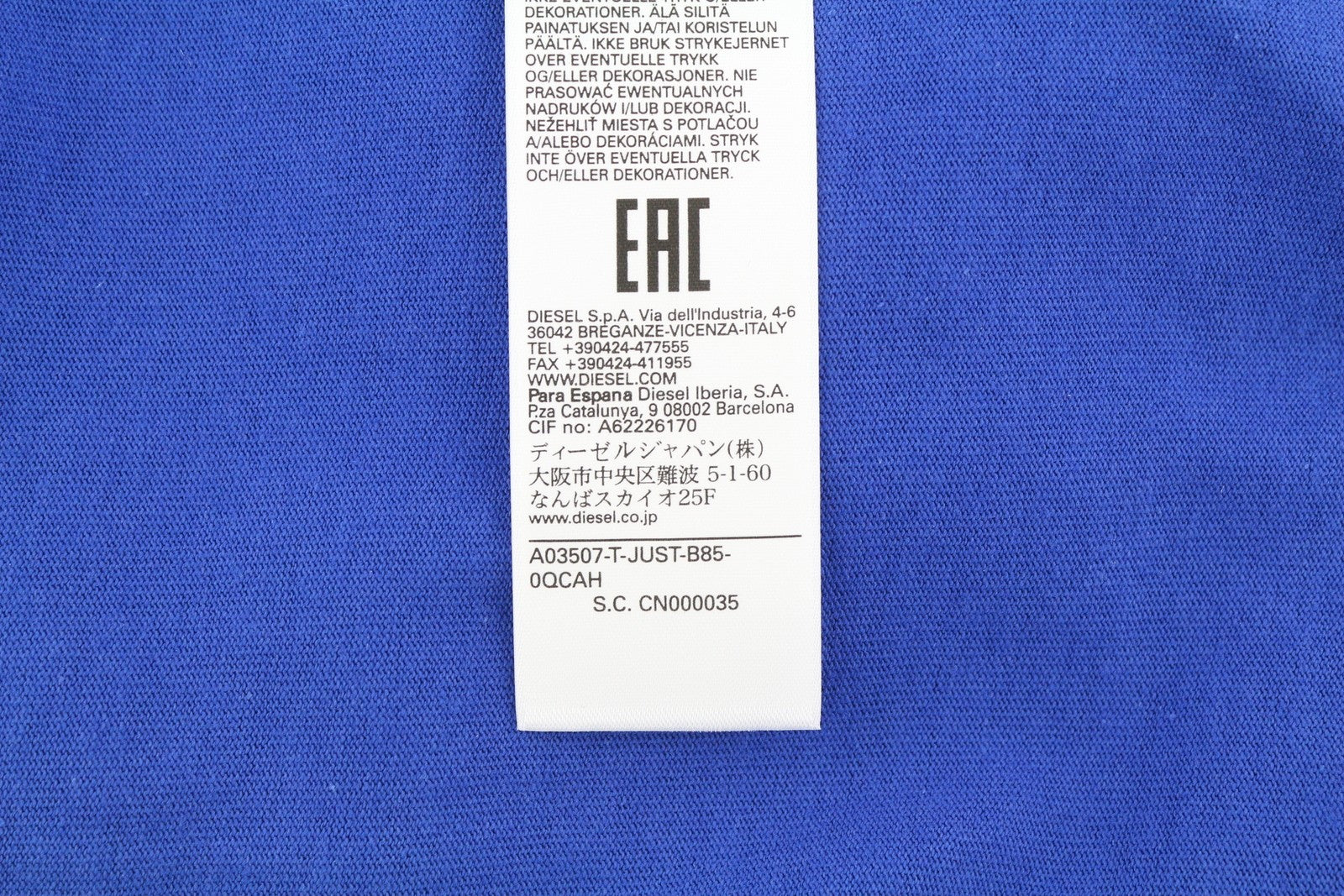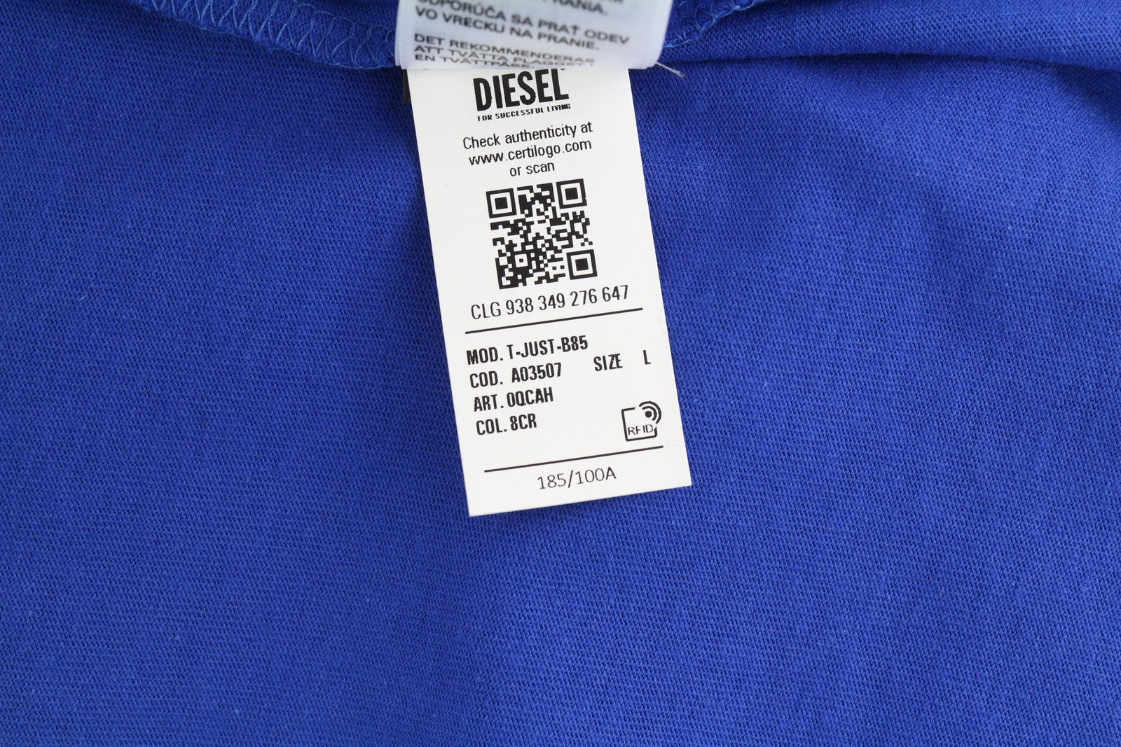 DIESEL T-Just-B85 vyriški marškinėliai, L dydžio, mėlyni, trumpomis rankovėmis, apvalia apykakle, medvilniniu trikotažu.