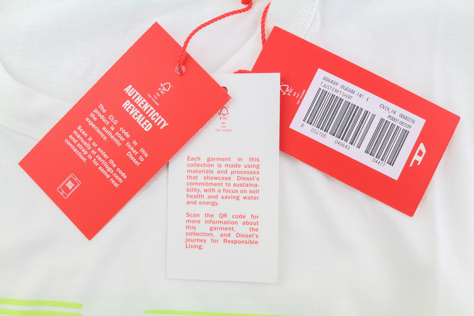 DIESEL T-Just-E19 vyriški marškinėliai su trumpomis rankovėmis, L dydžio, apvalia apykakle, priekyje, balti.