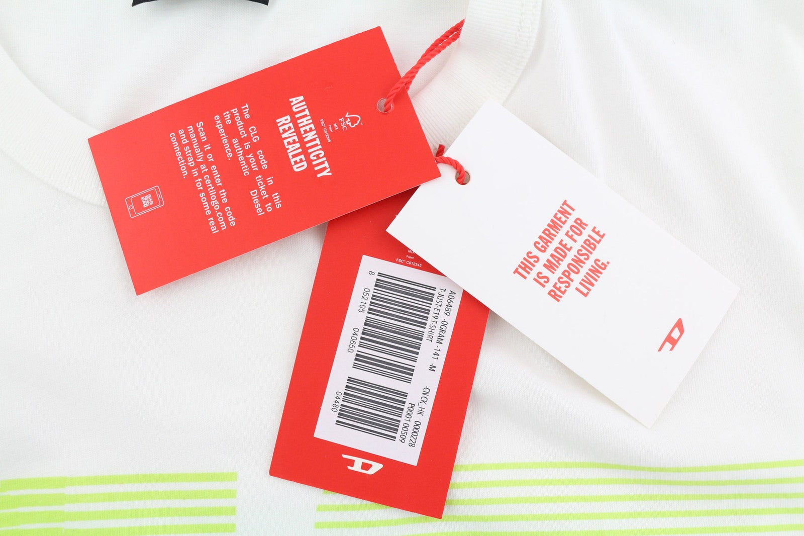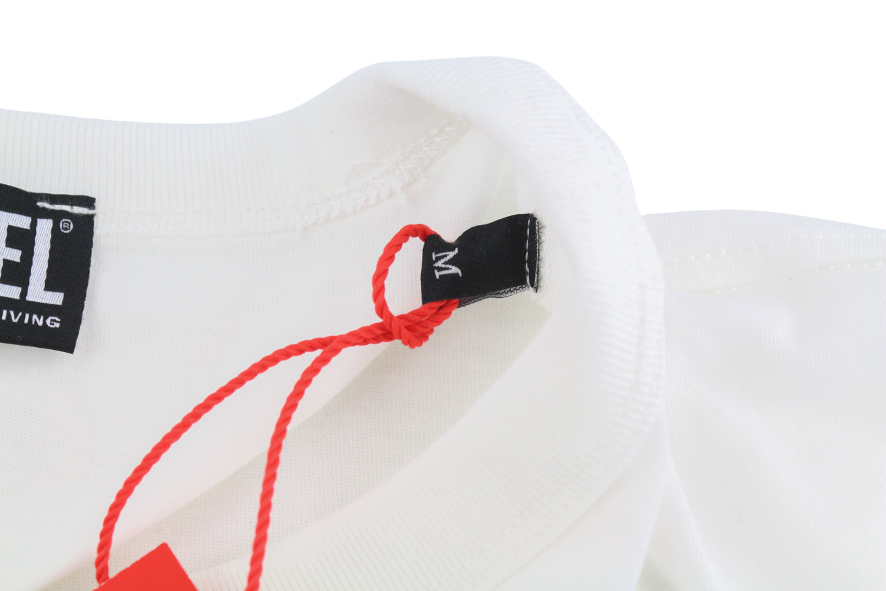 DIESEL T-Just-E19 vyriški marškinėliai M trumpomis rankovėmis, apvalia apykakle, priekyje, balti trikotažo rašto