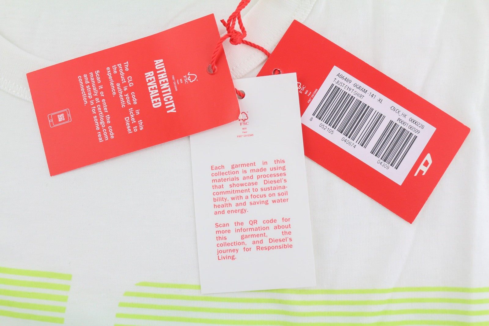 DIESEL T-Just-E19 vyriški marškinėliai XL dydžio, trumpomis rankovėmis, apvalia apykakle, priekyje, balti.