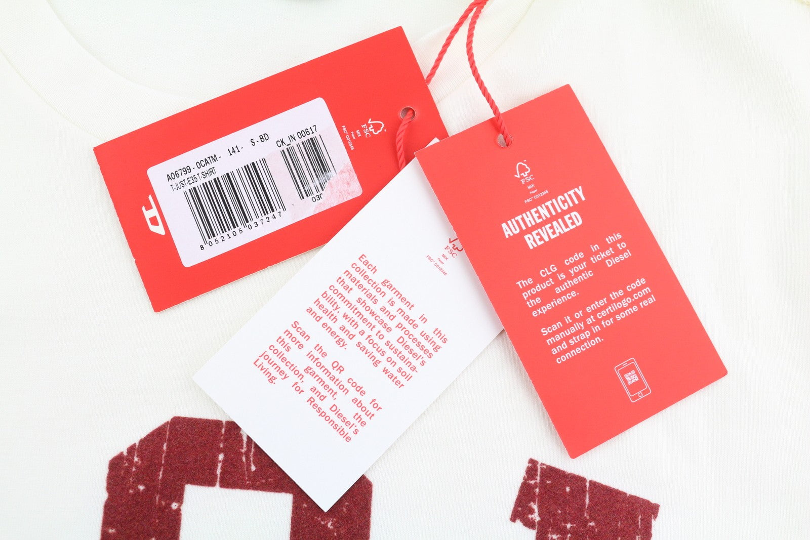 DIESEL T-Just-E35 vyriški marškinėliai S, balti, tamprios medvilnės apvalios rankovės