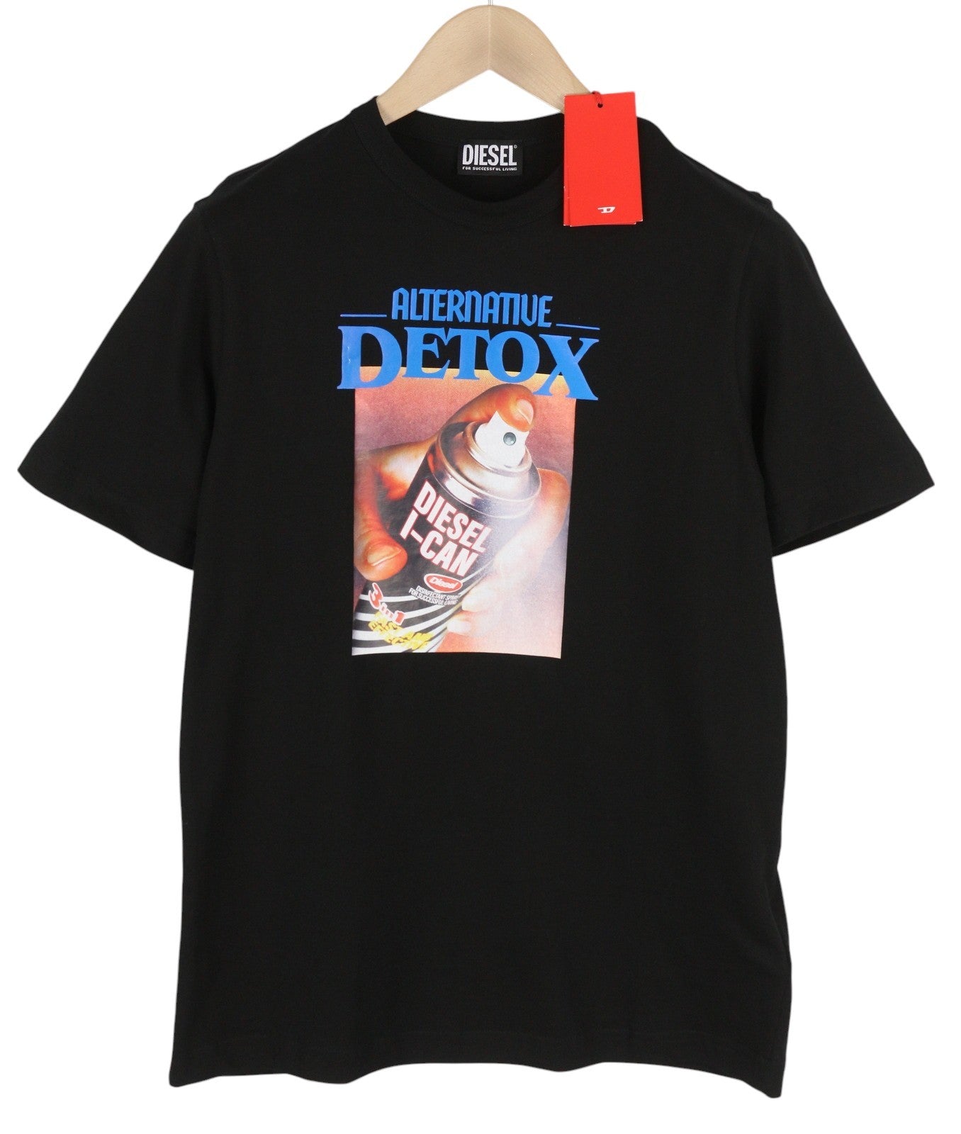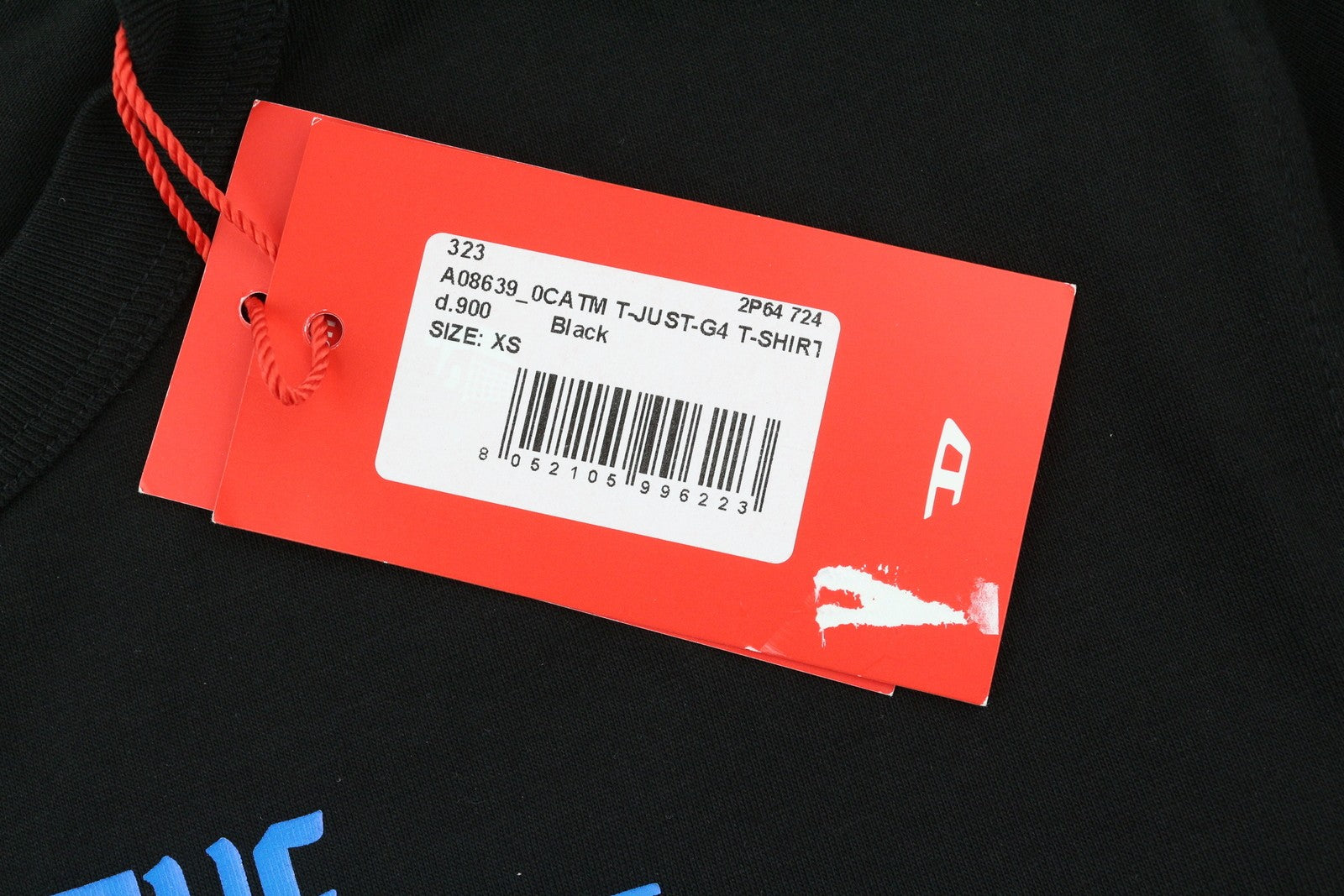 DIESEL T-Just-G4 vyriški marškinėliai XS, juodi, trumpomis rankovėmis, apvalia kaklo iškirpte, tamprūs trikotažiniai marškinėliai