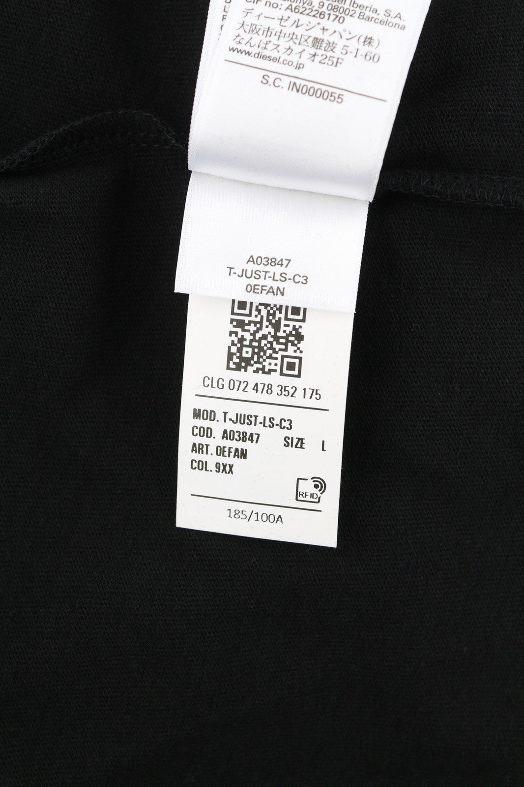 DIESEL T-Just-LS-C3 vyriškas džemperis L, juodas, megztinis apvalia kaklo iškirpte, ilgomis rankovėmis, logotipas