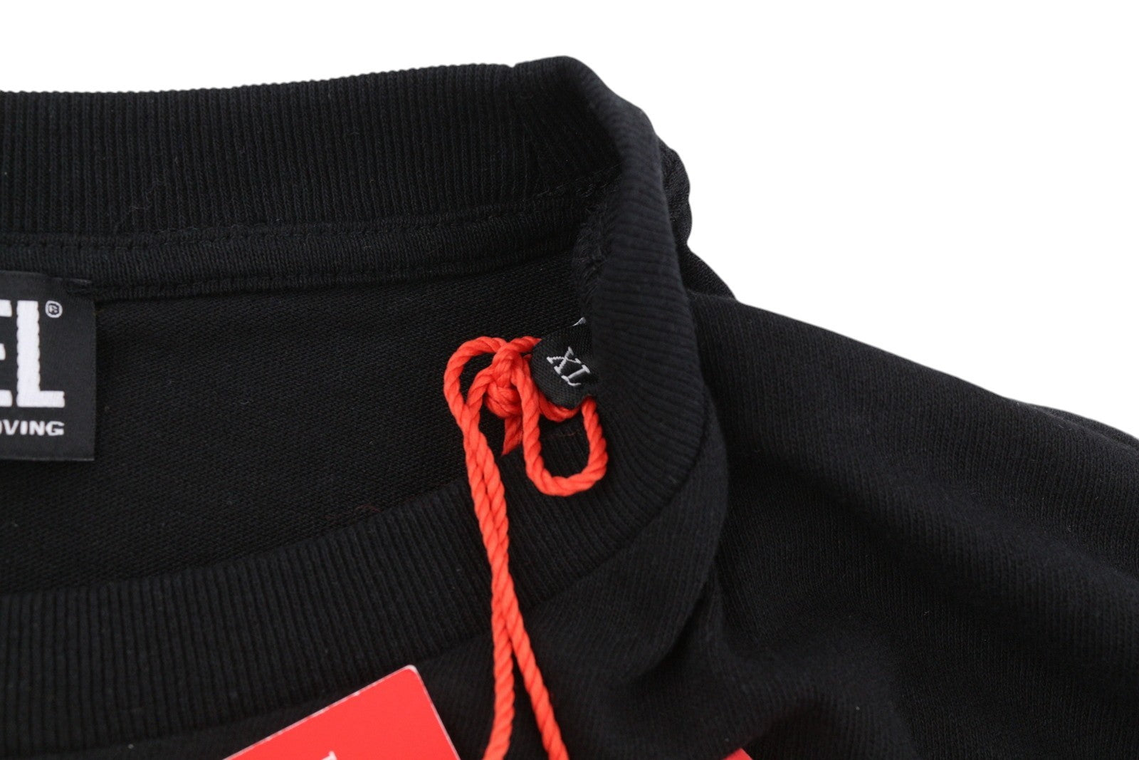 DIESEL T-Just-LS-C3 vyriški marškinėliai XL dydžio, juodi, medvilniniai, apvalia apykakle, ilgomis rankovėmis. Rekomenduojama kaina – 70 €.