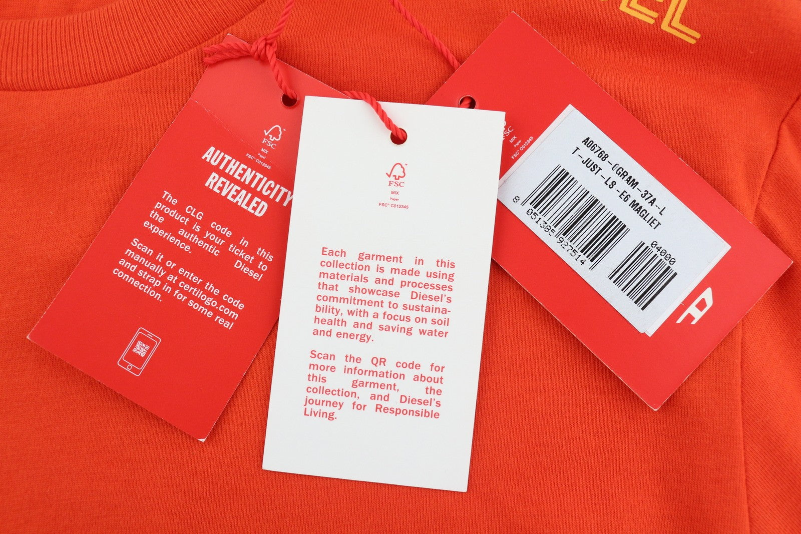 DIESEL T-Just-LS-E6 vyriški marškinėliai L dydžio oranžiniai su megztiniu ilgomis rankovėmis apvalia apykakle