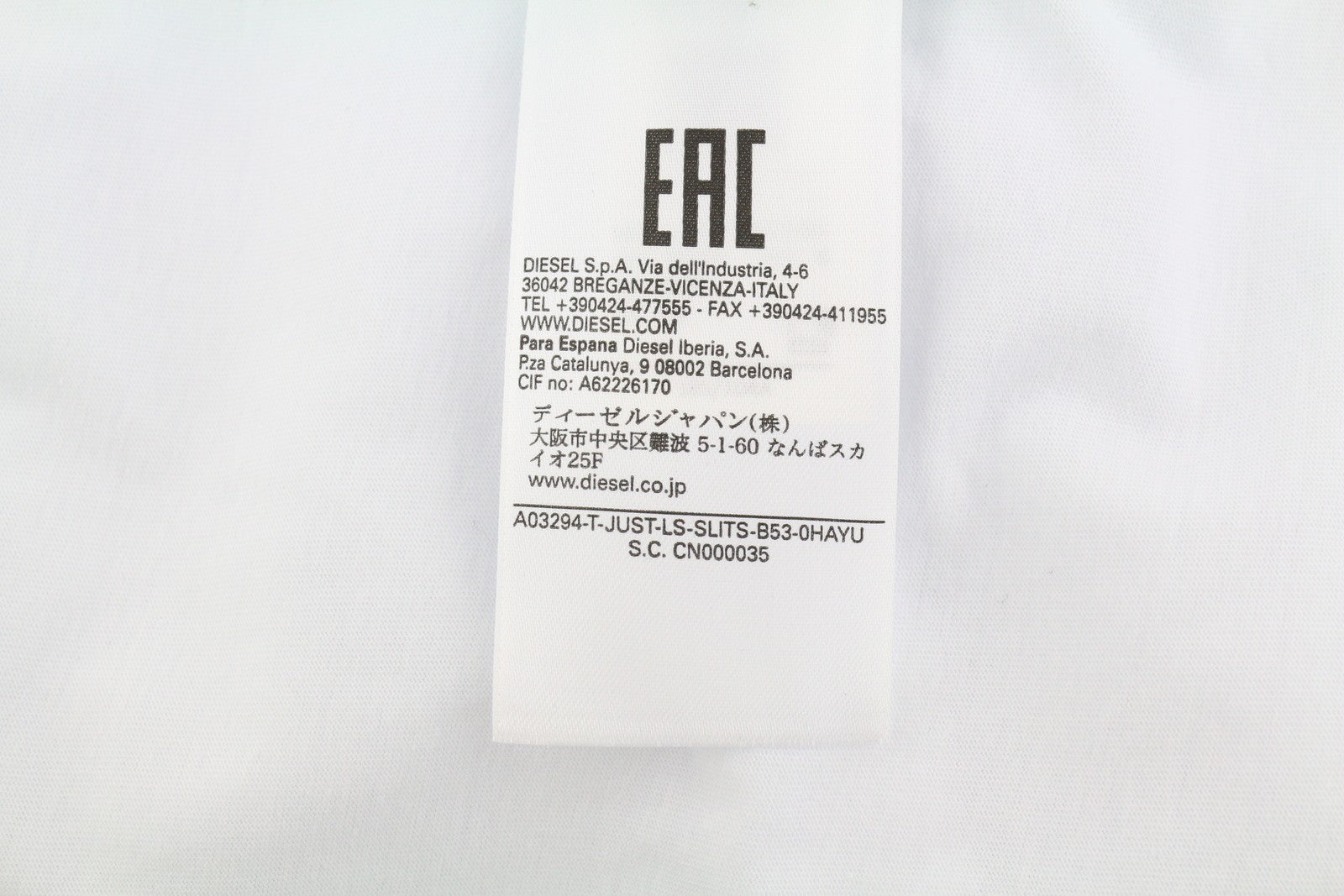 DIESEL T-Just-LS-Slits-B53 vyriški marškinėliai, XL dydžio, balti, megztiniai su apvalia apykakle