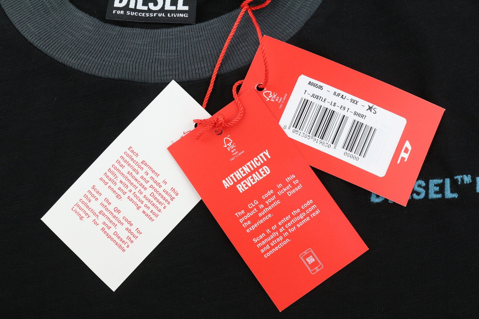 DIESEL T-Justle-LS-E9 Mens T-Shirt XS Black Long Sleeve Crew Neck RRP€135