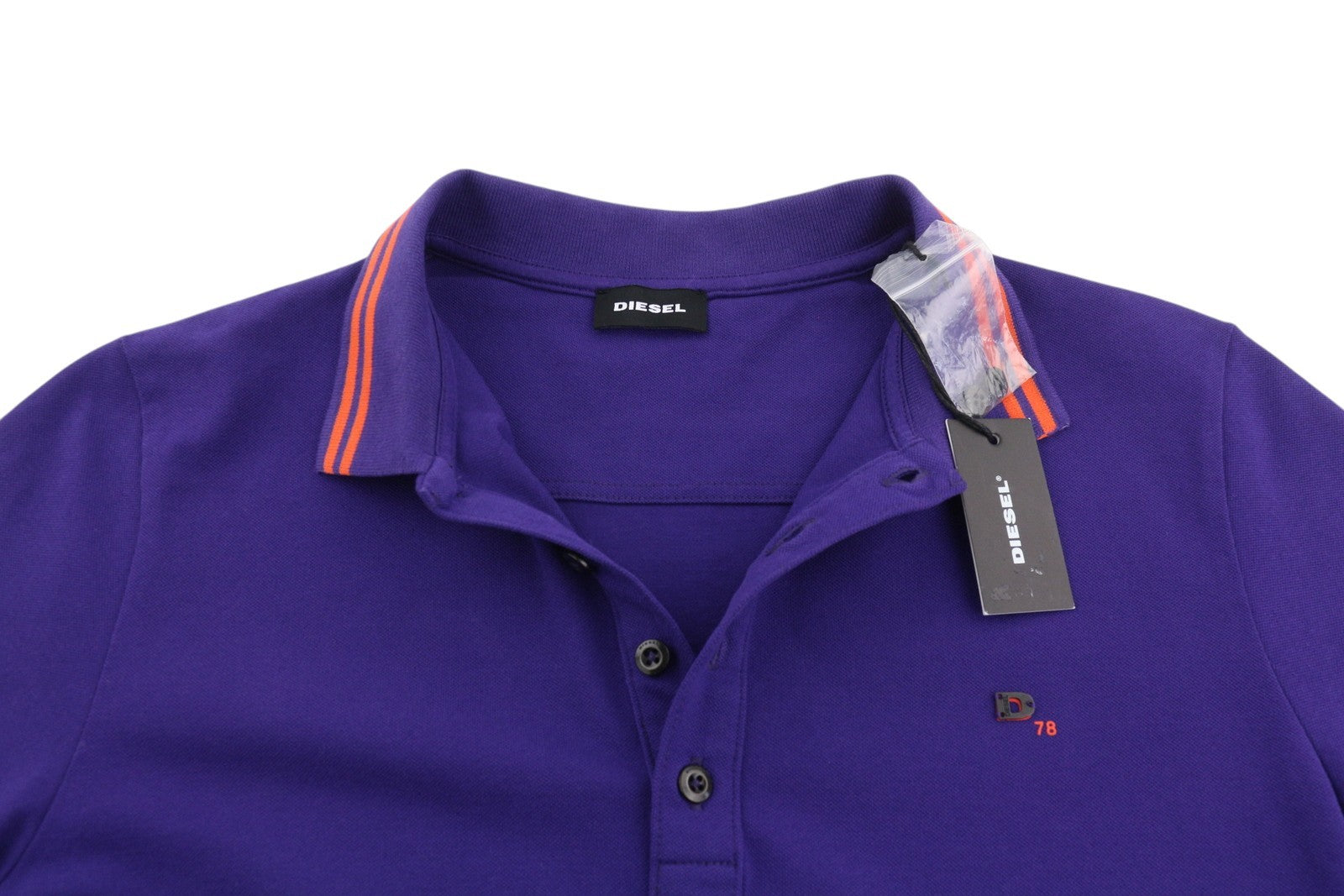 DIESEL T-Randy vyriški marškinėliai su trumpomis rankovėmis, tamsiai mėlyni, su sagomis ir tampriu raštu.
