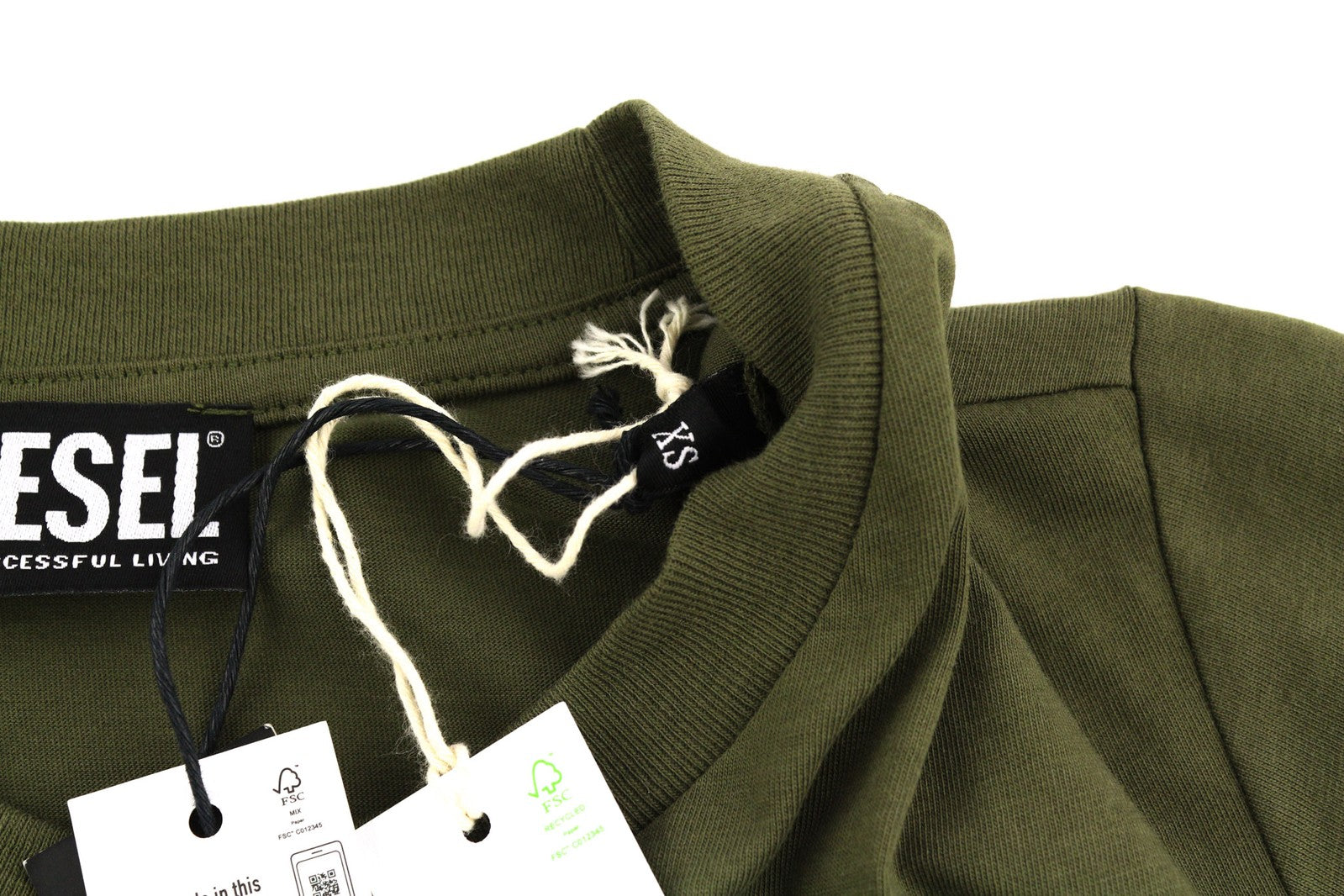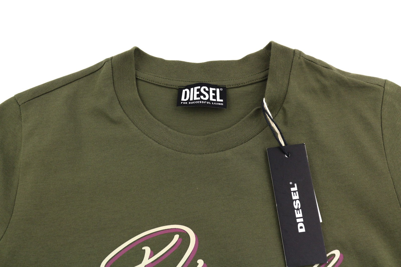 DIESEL T-Sily-K10 moteriški marškinėliai XS dydžio, trumpomis rankovėmis, apvalia kaklo iškirpte, chaki spalvos, laisvalaikio stiliaus.