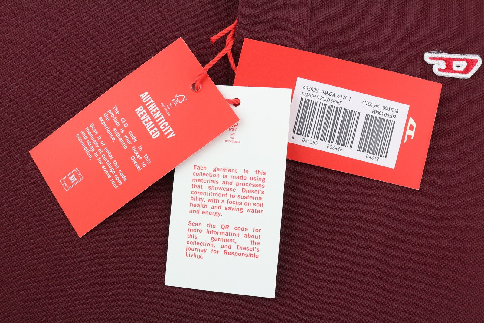 DIESEL T-Smith-D vyriški marškinėliai L dydžio, trumpomis rankovėmis, polo apykakle, medvilniniai, bordo spalvos