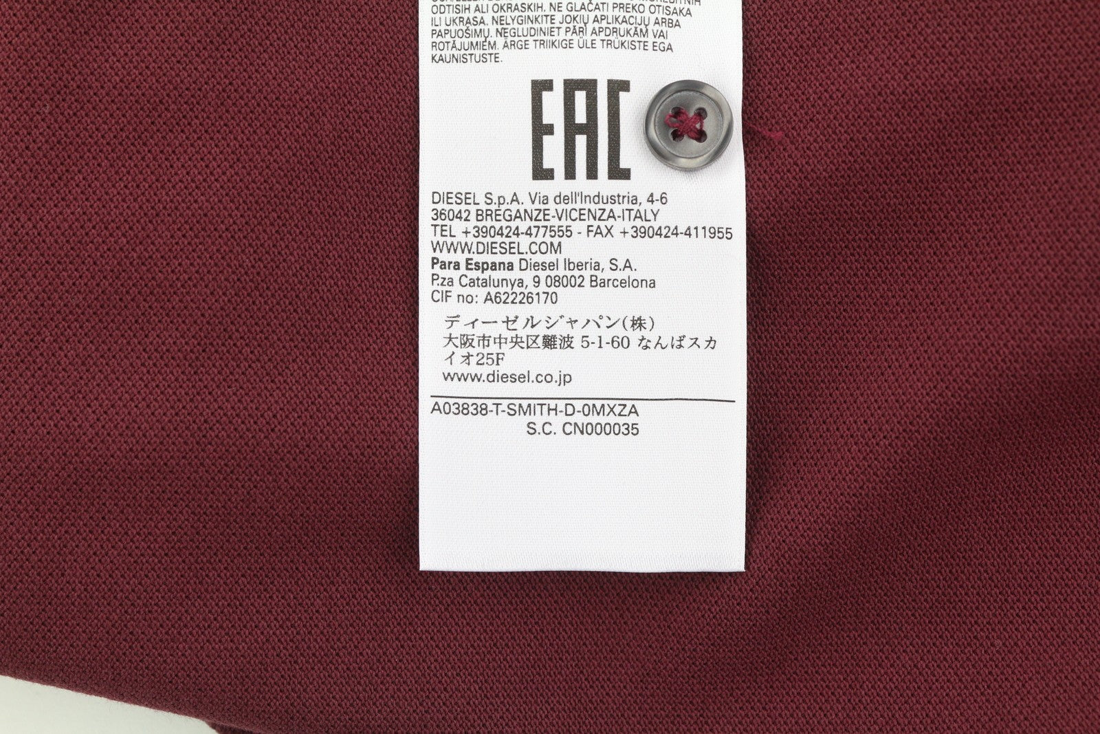 DIESEL T-Smith-D vyriški marškinėliai M su trumpomis rankovėmis, polo apykakle, medvilniniai, bordo spalvos, RRP 100 €