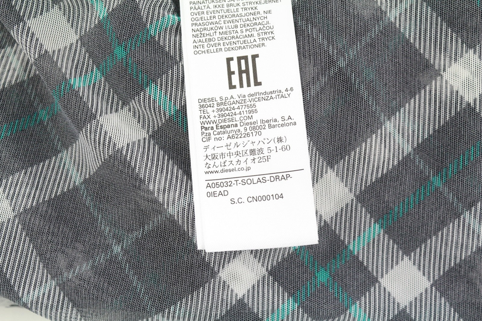 DIESEL T-Solas-Drap Women's T-Shirt S Black Plaid Sleeveless Ruffle Sides