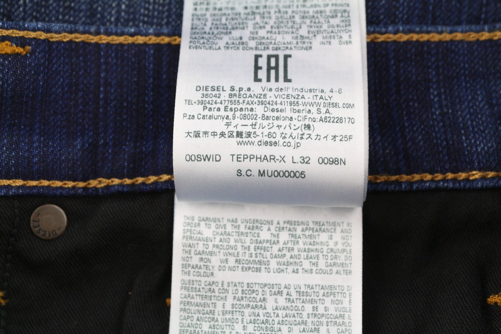 DIESEL Tepphar 0098N vyriški džinsai W31/L32 Slim Fit, tamprūs, plėšyti, mėlyni, RRP 200 €