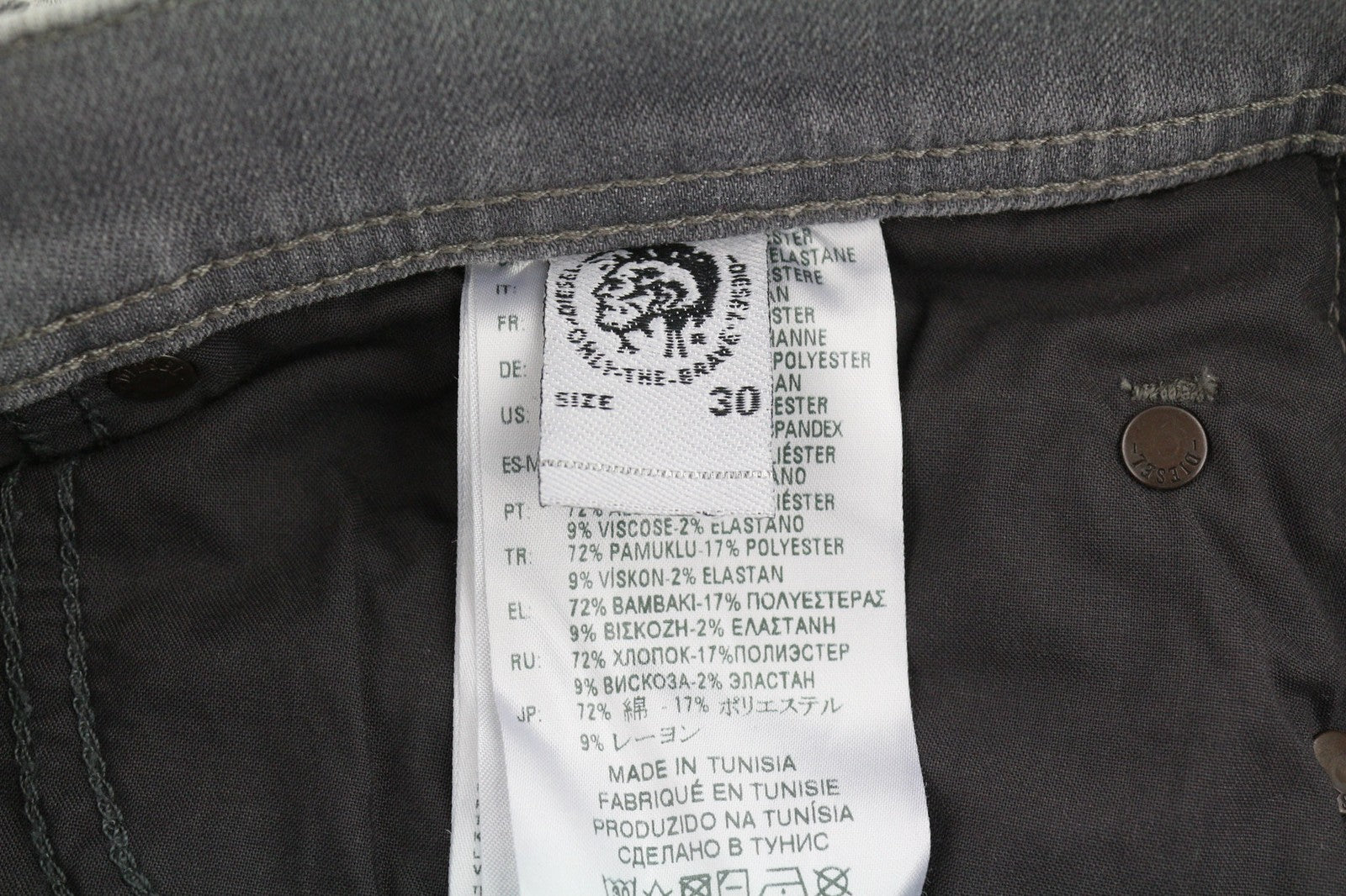 DIESEL Tepphar 0687W vyriški džinsai W30/L32 Slim morkų pilkos spalvos, tamprios, plėšytos medvilnės