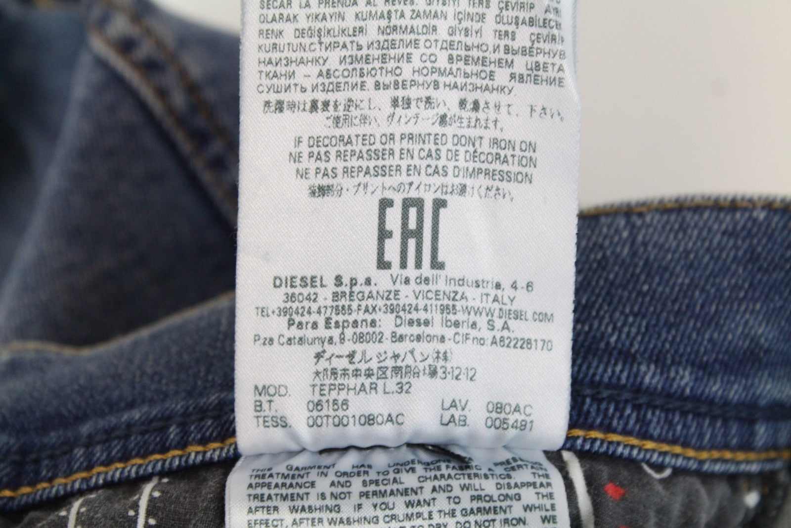 DIESEL Tepphar 080AC vyriški džinsai W27/L32 Slim morkų mėlynos spalvos, tamprios, plėšytos medvilnės