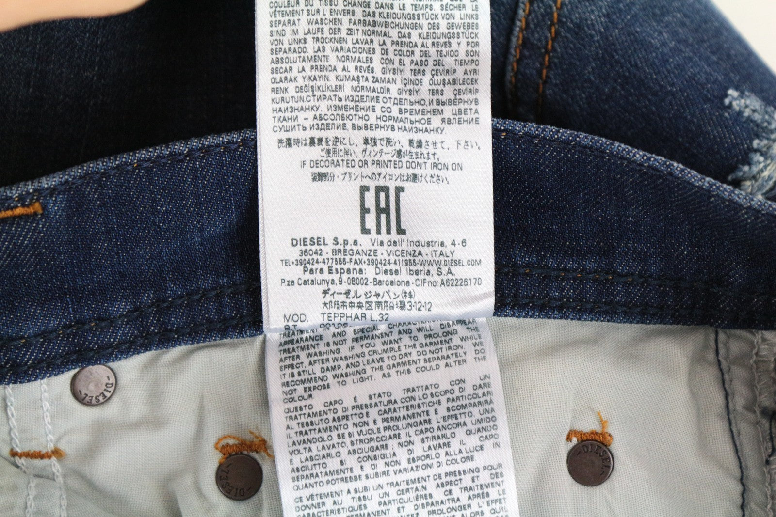 DIESEL Tepphar 084TX vyriški W28/L32 ploni, morkų kirpimo, mėlyni, tamprūs medvilniniai džinsai