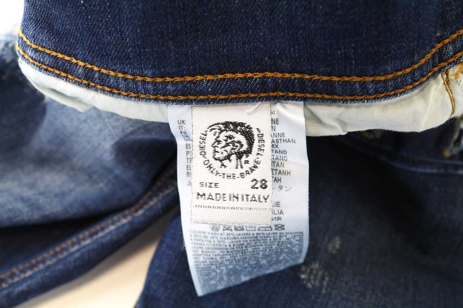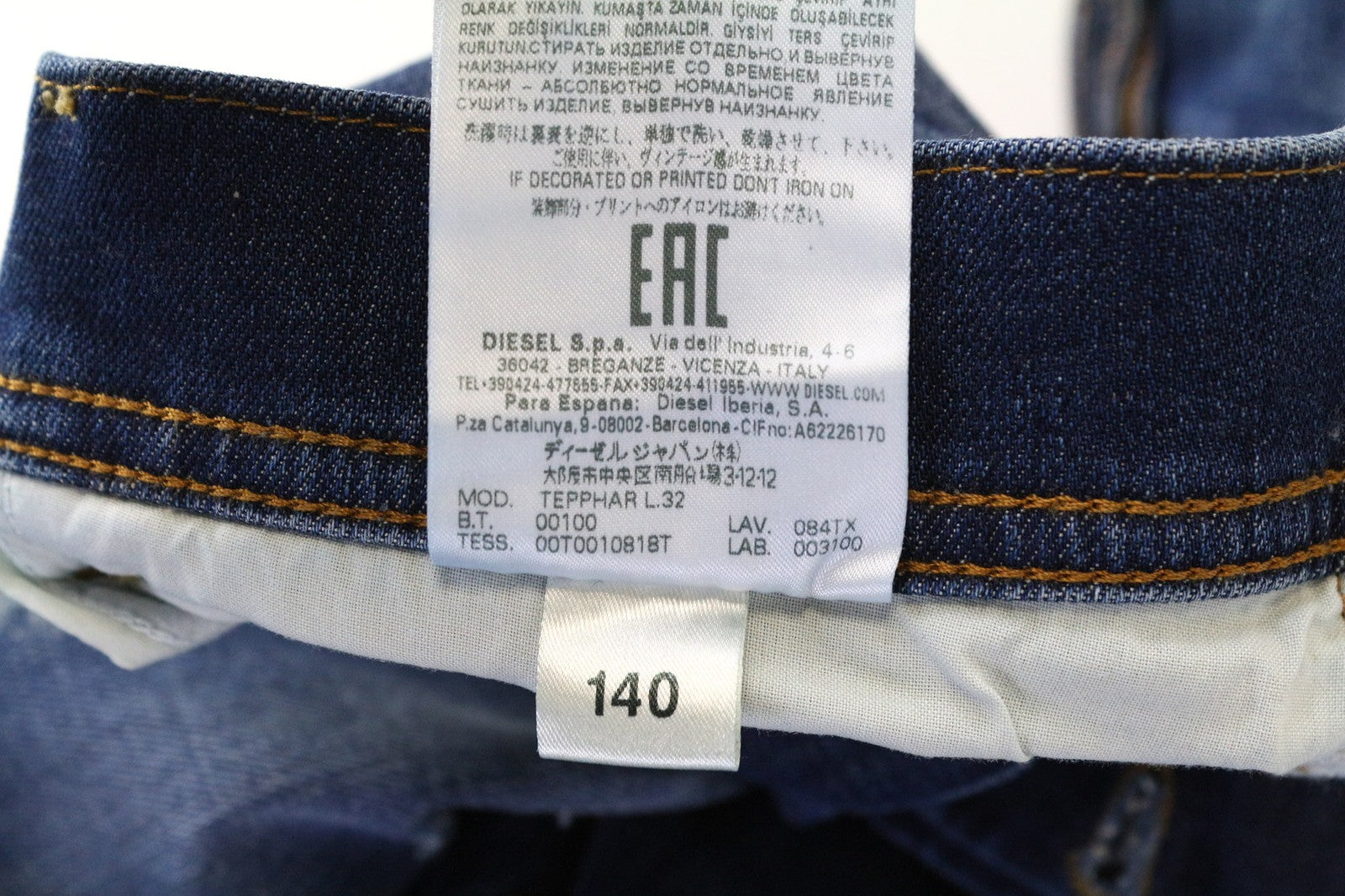 DIESEL Tepphar 084TX vyriški džinsai W28/L32 mėlyni, morkų spalvos, ploni, tamprūs, plėšyti medvilniniai džinsai