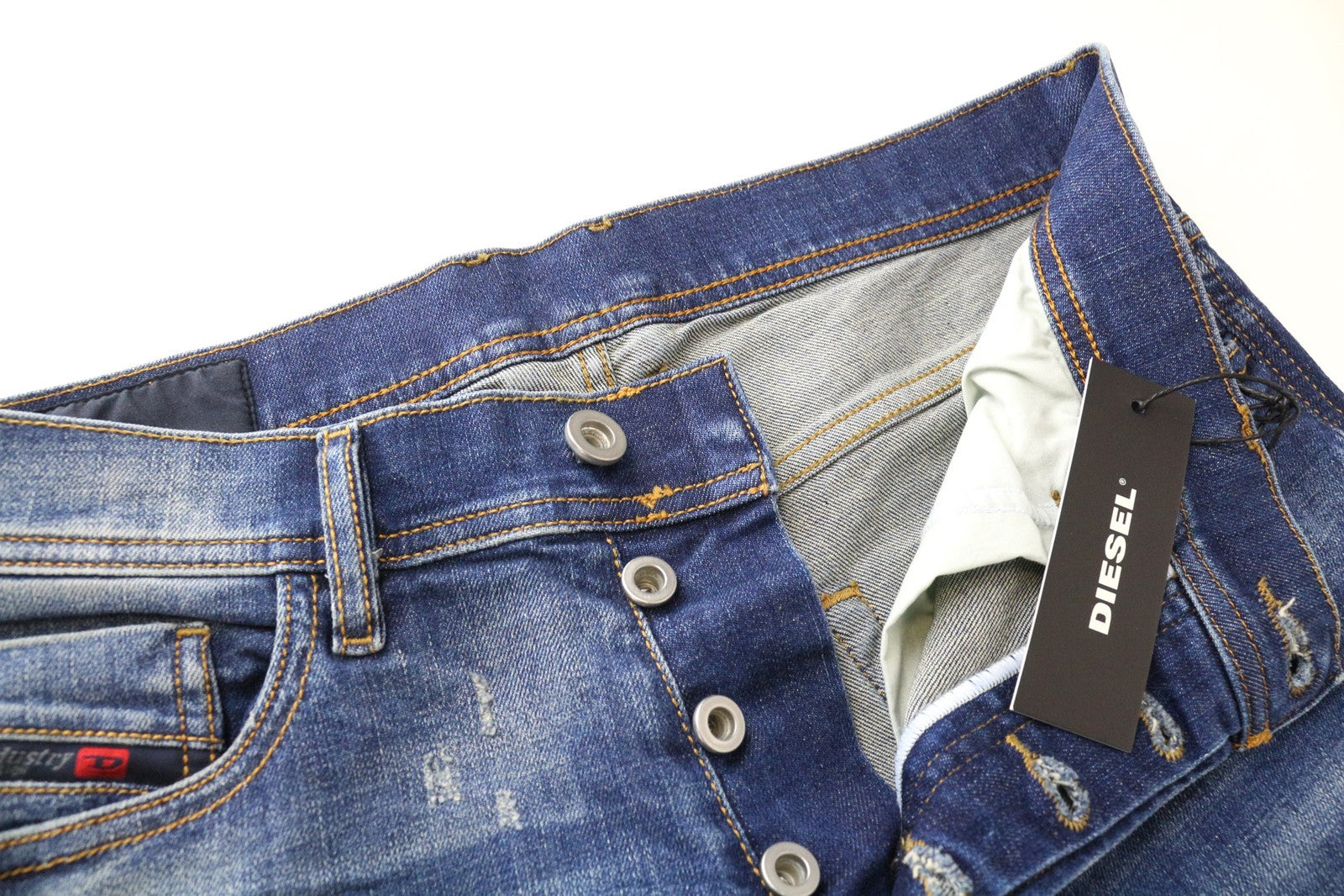 DIESEL Tepphar 084TX Men's Jeans W28/L32 Slim Carrot Blue Cotton Ripped Wash